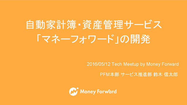 自動家計簿・資産管理サービス 「マネーフォワード」の開発 2016/05/12 Tech Meetup by Money Forward PFM本部 サービス推進部