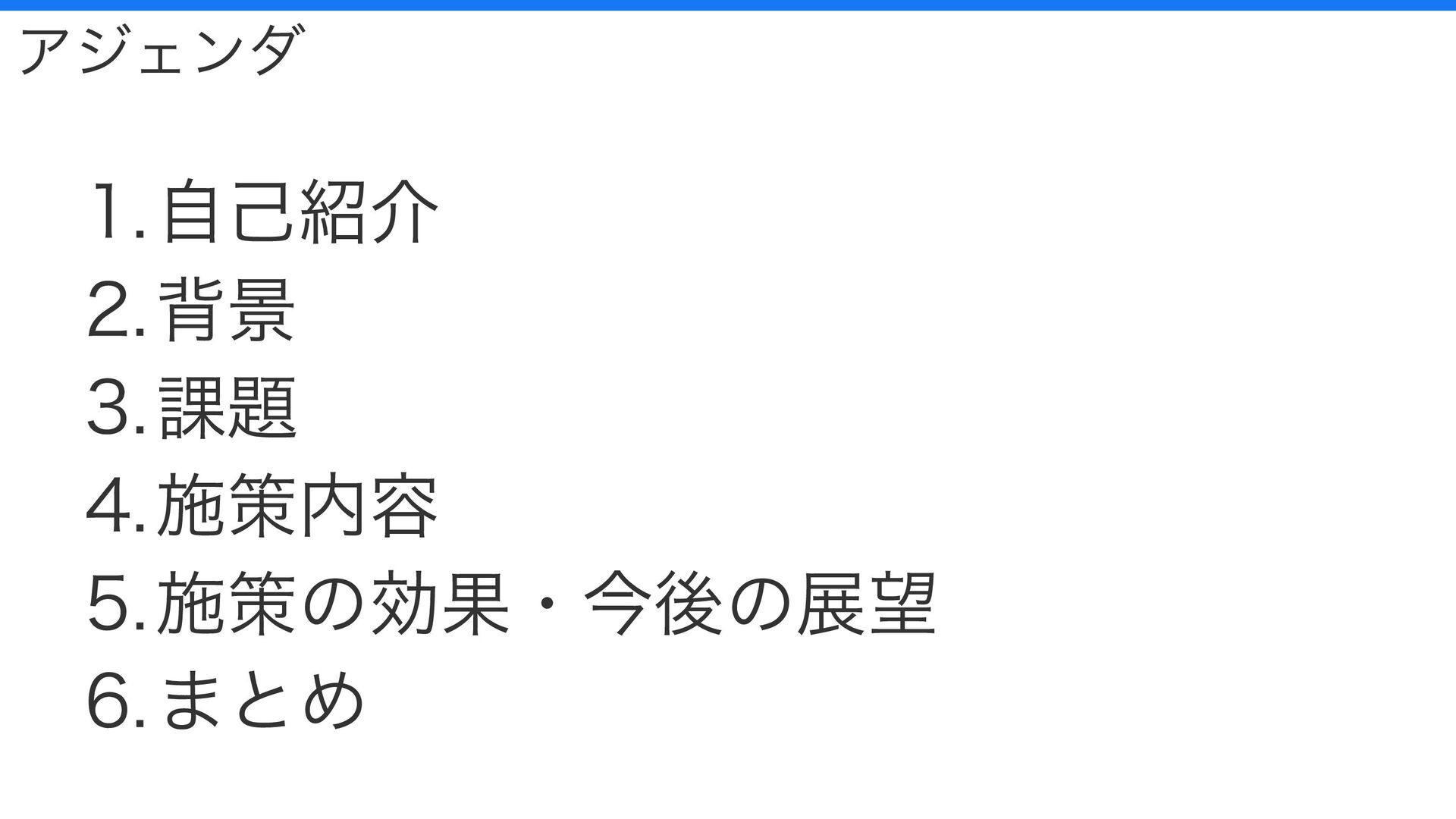 アジェンダ 1.自己紹介 2.背景 3.課題 4.施策内容 5.施策の効果・今後の展望 6.まとめ