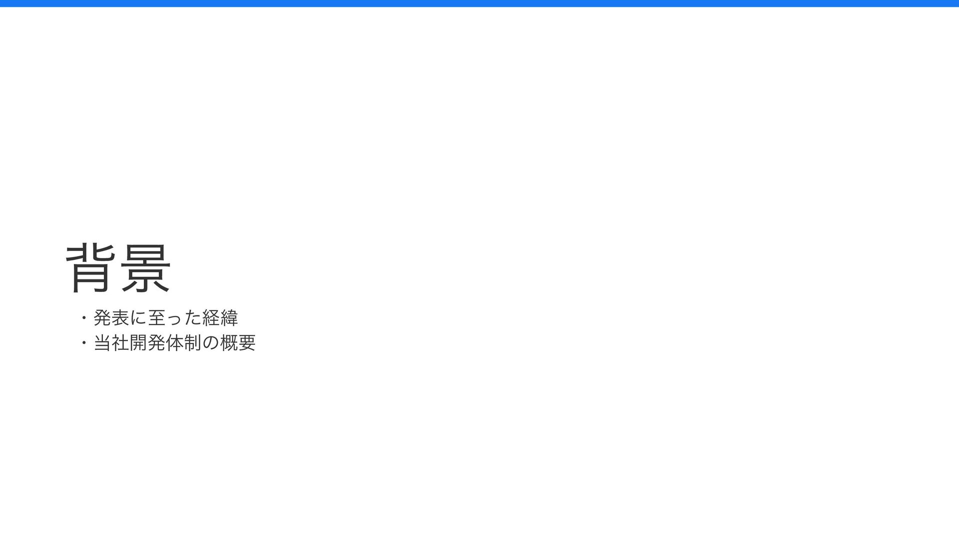 背景 ・発表に至った経緯 ・当社開発体制の概要