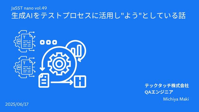 生成AI をテストプロセスに活用し" よう" としている話 テックタッチ株式会社 QA エンジニア Michiya Maki JaSST