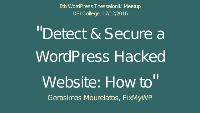 a WAF • Use a WordPress friendly Hosting Provider Extra Security Measurements • Don't access your site backend and hosting panel from public wif and computers in general • Use an antivirus yourself, scan regularly your box