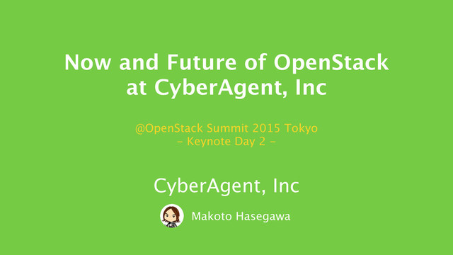 on our Github. If you have any questions and impressions, please create an issue on github !! I will reply as soon as possible. https://goo.gl/4VOO6h See you next Austin summit !! https://github.com/CyberAgent/openstack-summit-2015-tokyo/