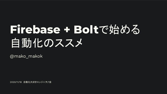 Firebase + Boltで始める 自動化のススメ @mako_makok 2020/11/18 自動化大好きエンジニア LT会