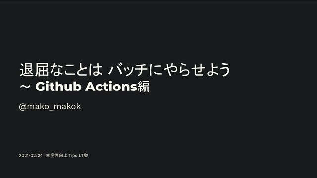 退屈なことは バッチにやらせよう ~ Github Actions編 @mako_makok 2021/02/24 生産性向上 Tips LT会