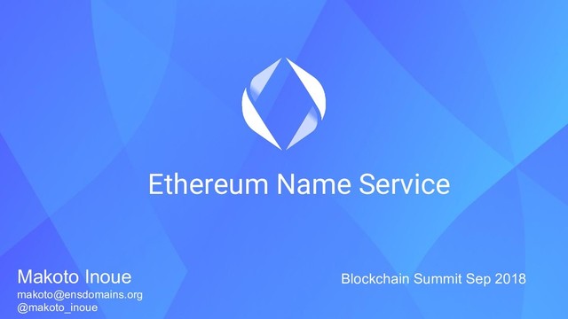 Ethereum Name Service Blockchain Summit Sep 2018 Makoto Inoue