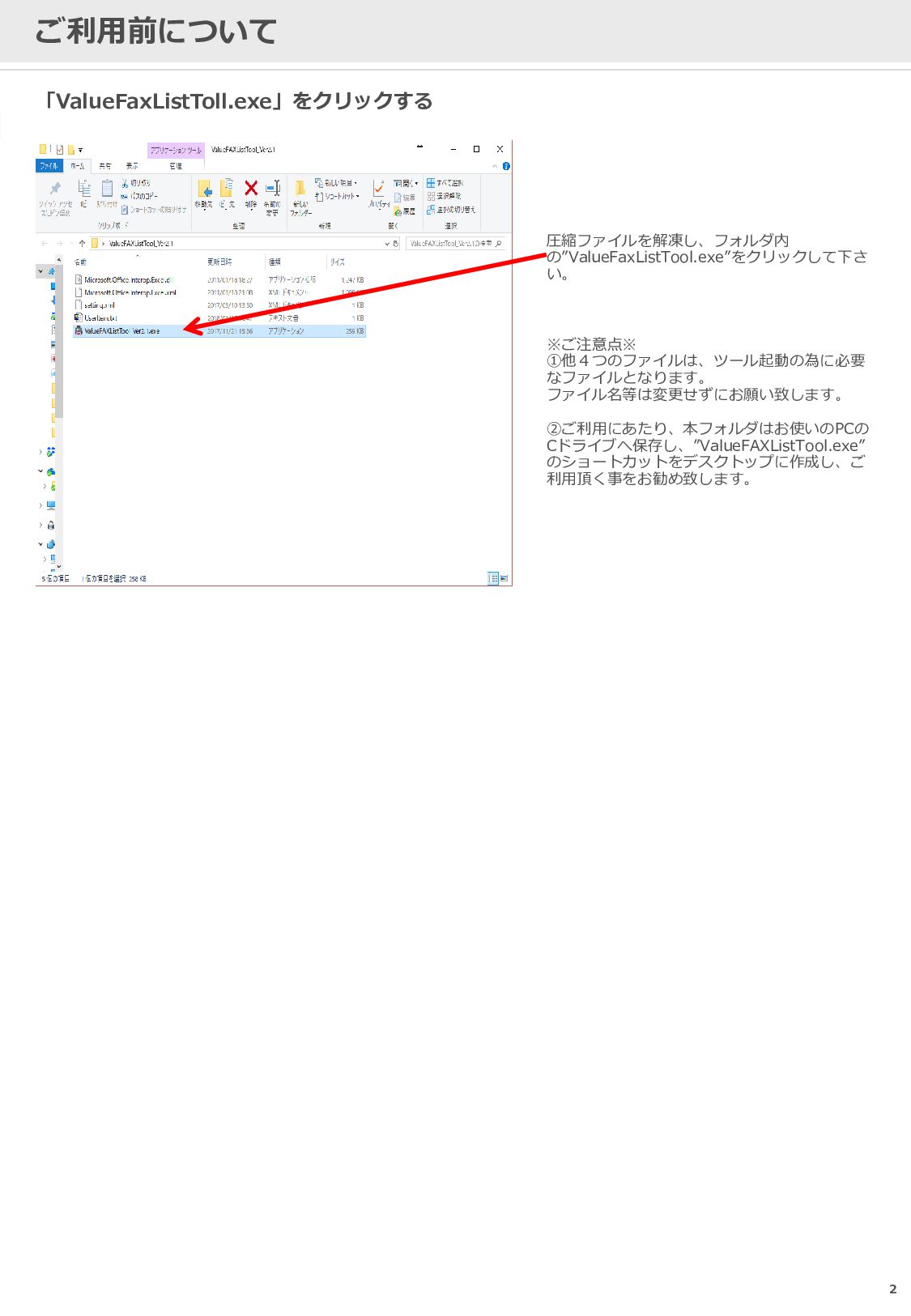 ValueFax用送信リスト変換前の自社リストに送 信結果を転記する事が出来ます。 ※ご準備頂くリストについて※ リストにつきましてはカンマ区切りでとなりま す。 その為、会社名など各項目のデータ内に”,(カン マ)”や改行が入っていますと、正常なチェック が行えず、誤作動の原因となり得る場合がござ います。 事前に”、(読点)”に置き換え、改行を消すなど、 お願い致します。 (excelでのご確認は分かりづらい場合がござい ますので、正常なチェックが行えない場合は、 一度メモ帳などで開いて頂き、ご確認頂けます と幸いです)