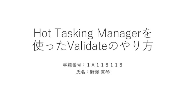 Hot Tasking Managerを 使ったValidateのやり方 学籍番号:1A118118 氏名:野澤 真琴