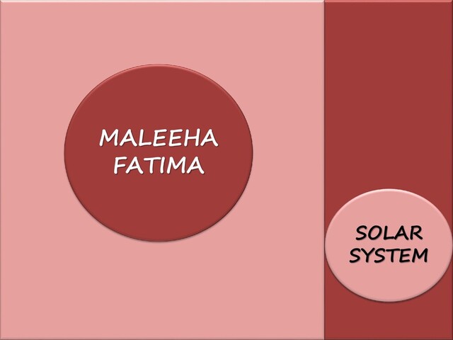 system. Our solar system is elliptical (like an egg) in shape. Sun is the center & the biggest object in our solar system as it contains more than 99% of the solar system’s mass. Astronomers think that solar system is more than 4.5 billion years old. By MaleehaFatima