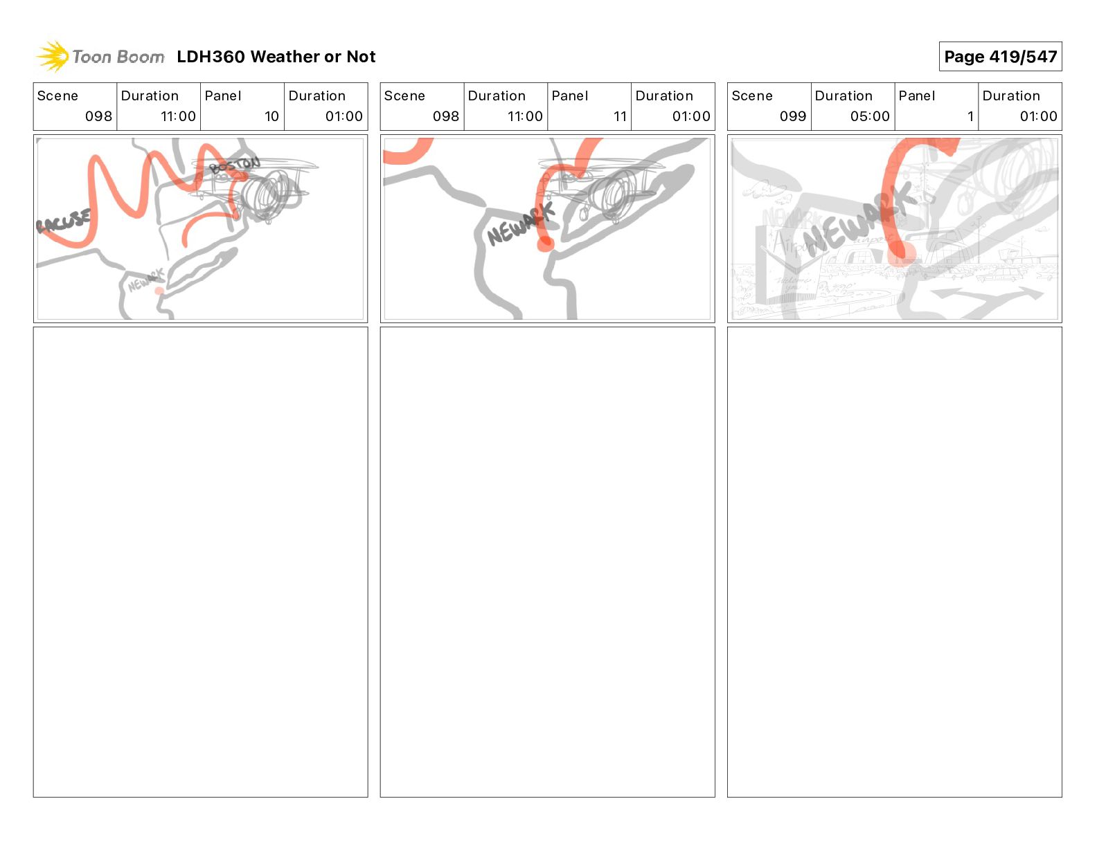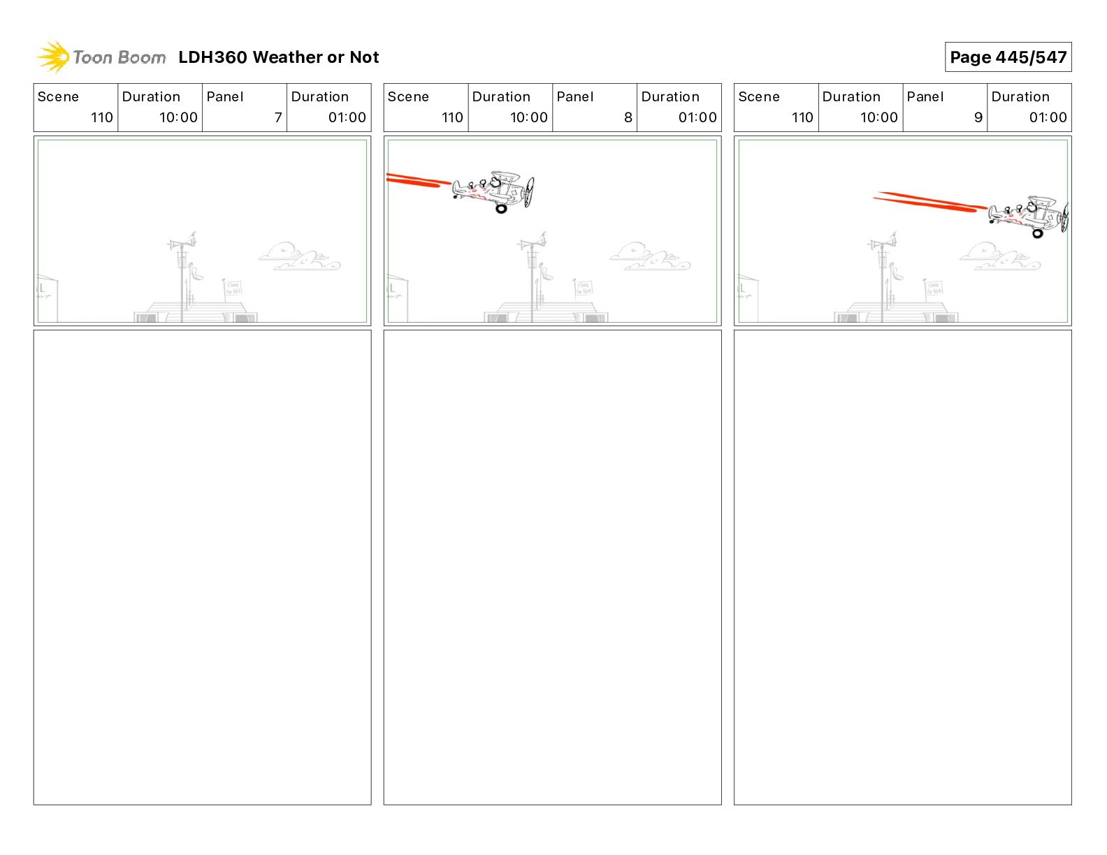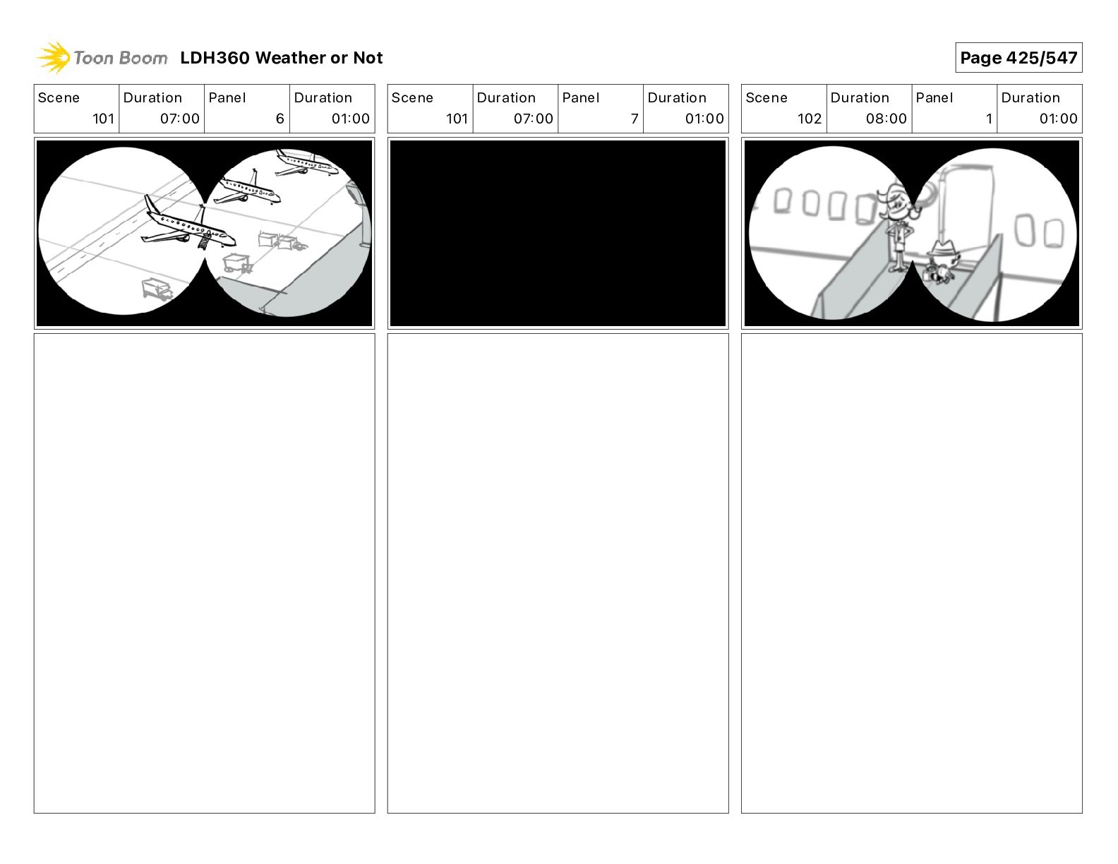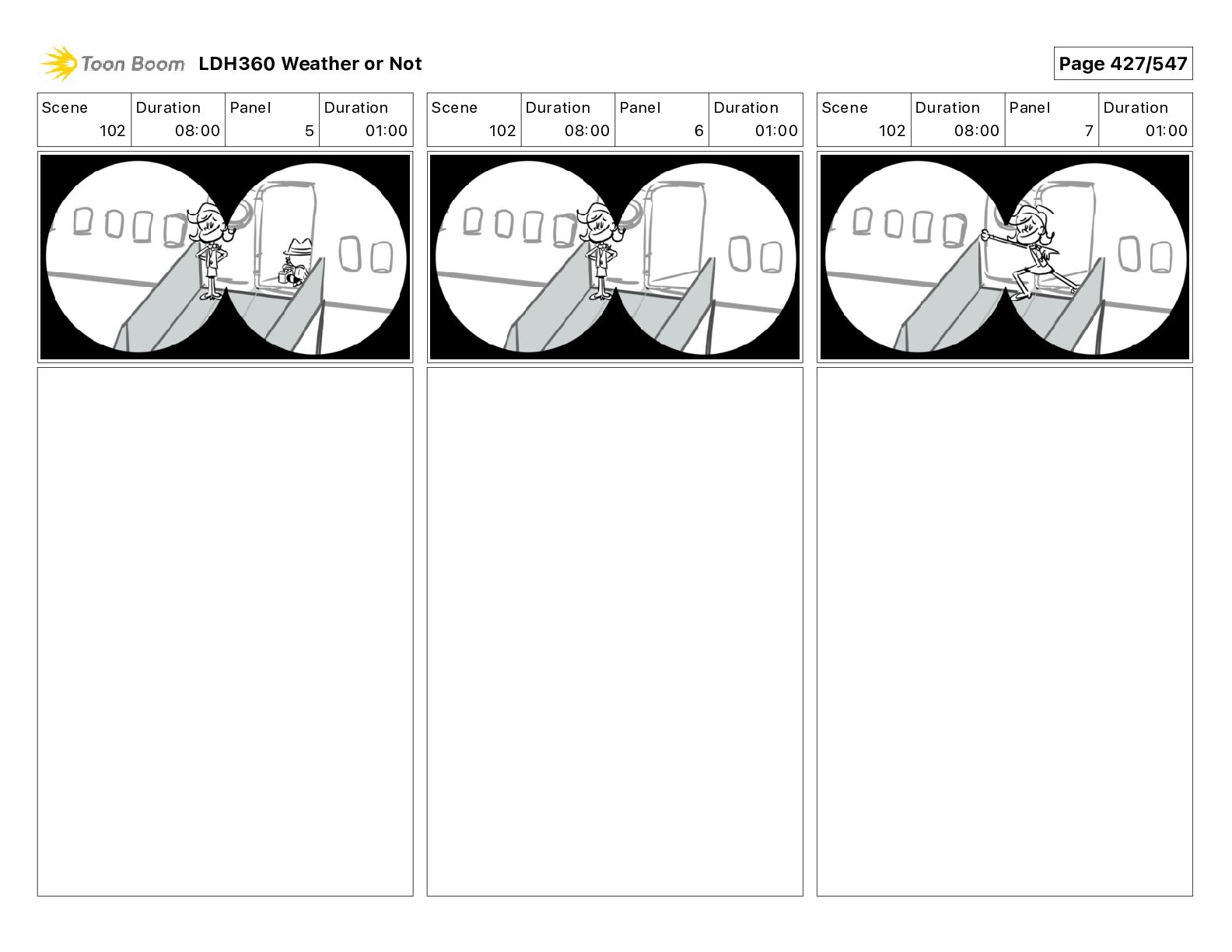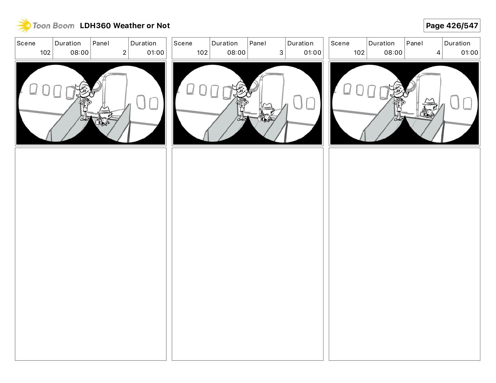 Scene 103 Duration 05 00 Panel 5 Duration 01 00 Dialog 73 FLIP Hold on, boys! Scene 104 Duration 03 00 Panel 1 Duration 01 00 Dialog 73 FLIP Hold on, boys! LDH360 Weather or Not Page 430/547