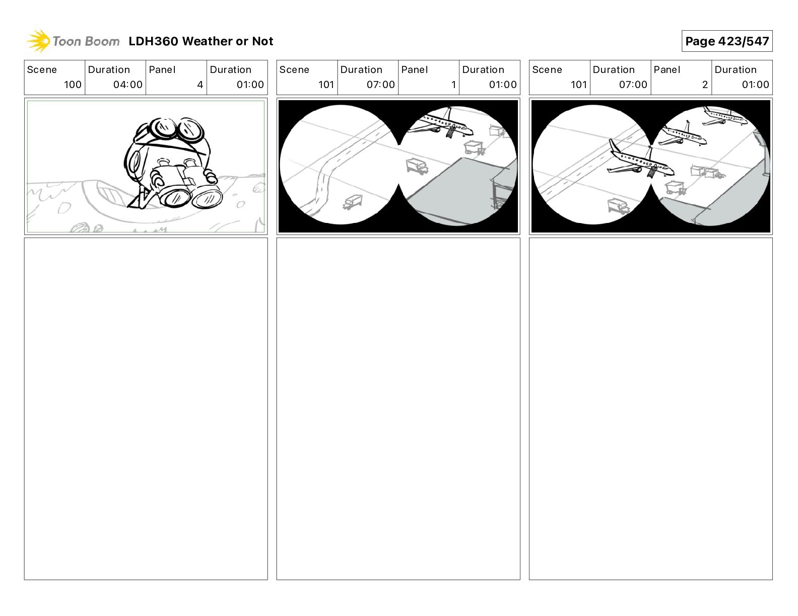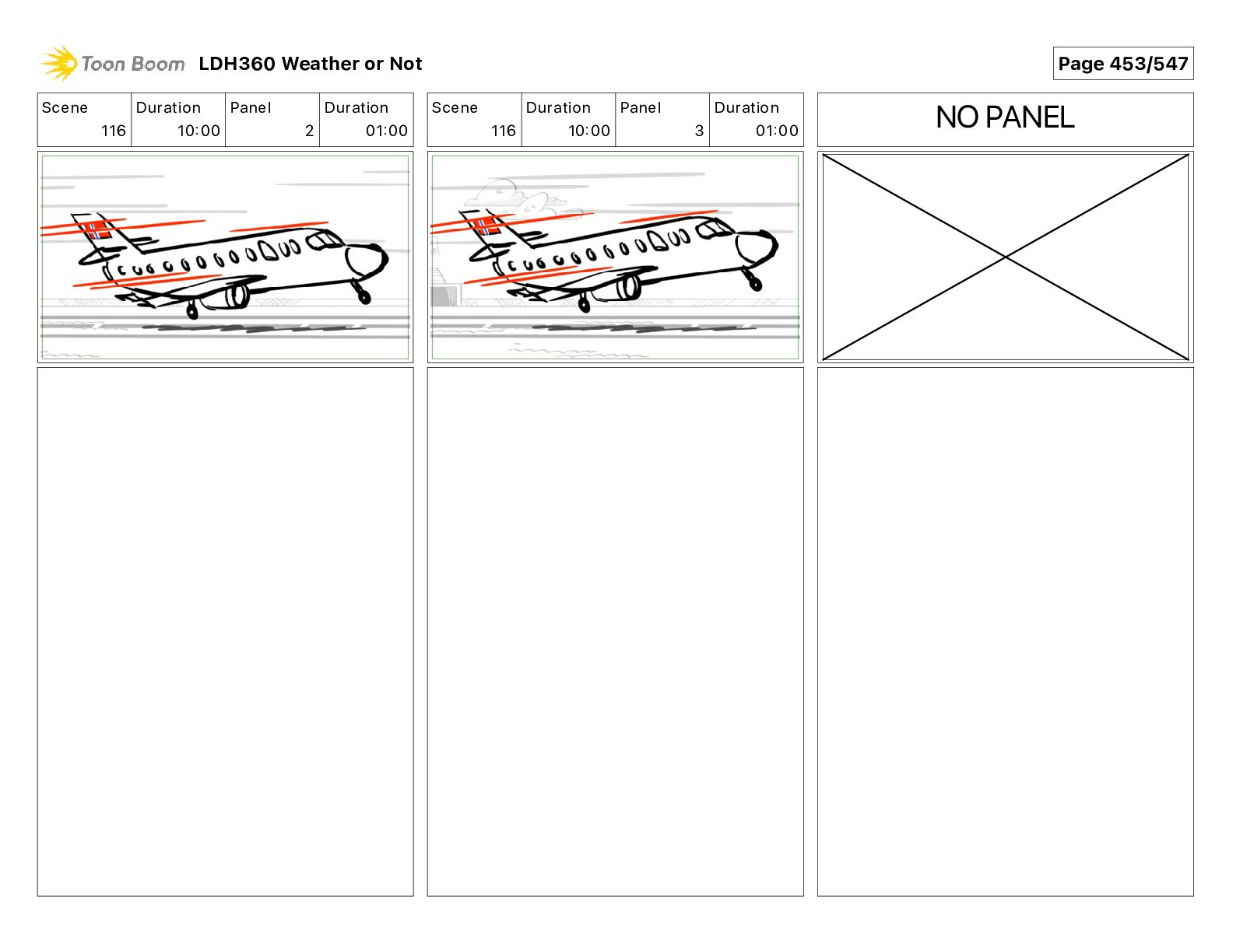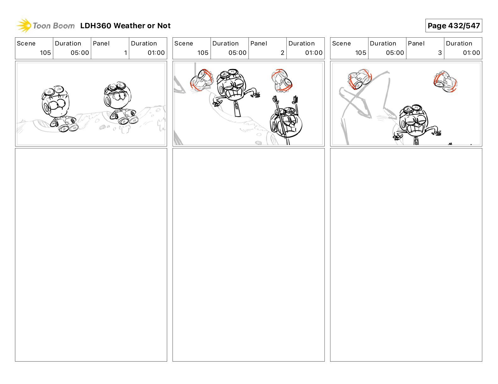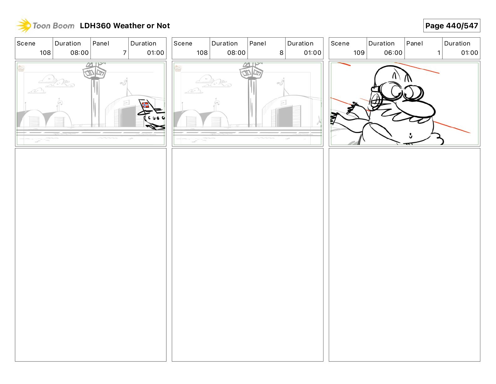 Scene 103 Duration 05 00 Panel 5 Duration 01 00 Dialog 73 FLIP Hold on, boys! Scene 104 Duration 03 00 Panel 1 Duration 01 00 Dialog 73 FLIP Hold on, boys! LDH360 Weather or Not Page 430/547