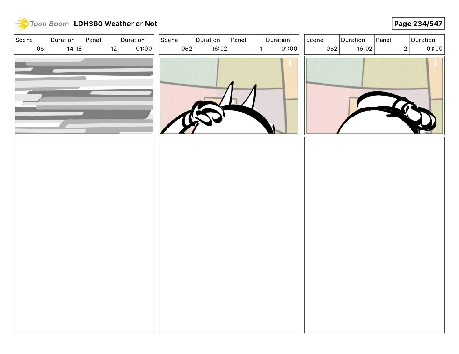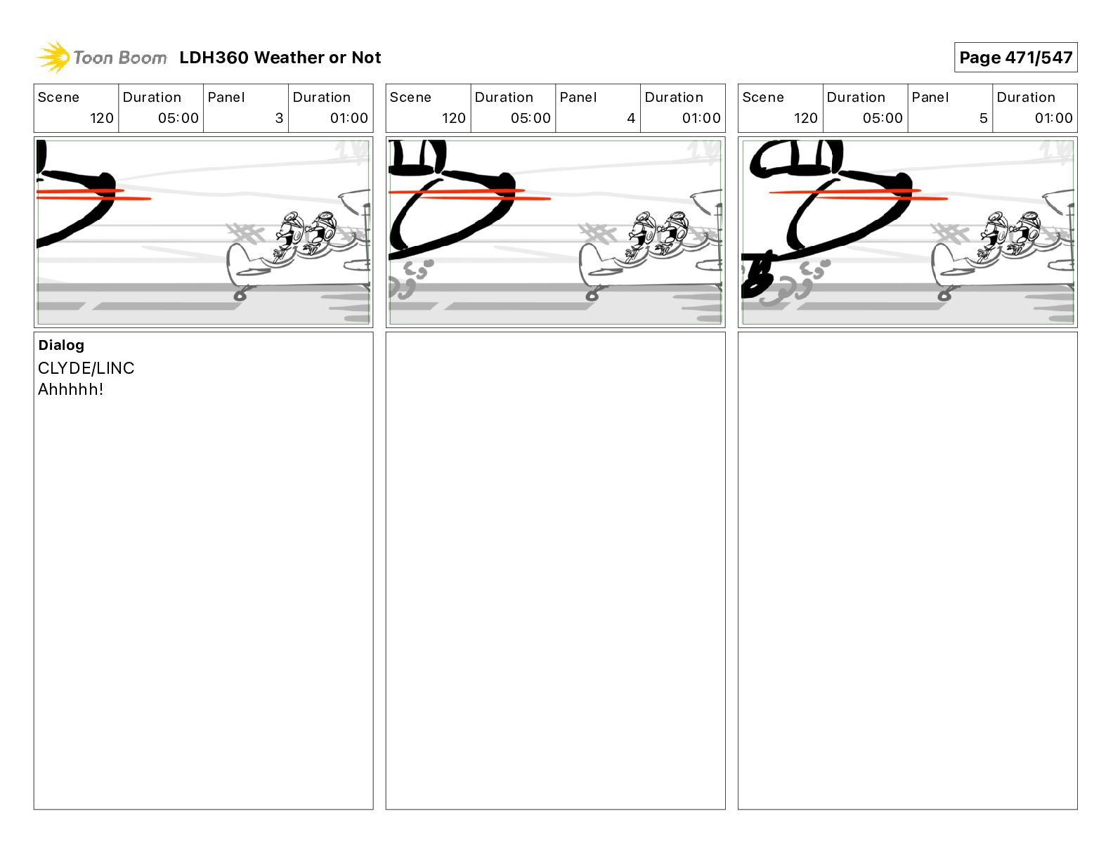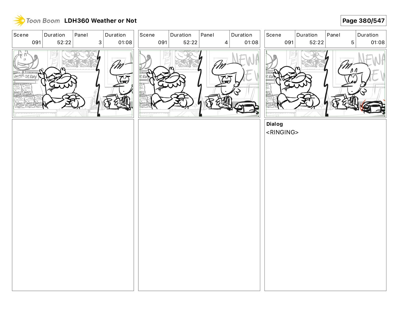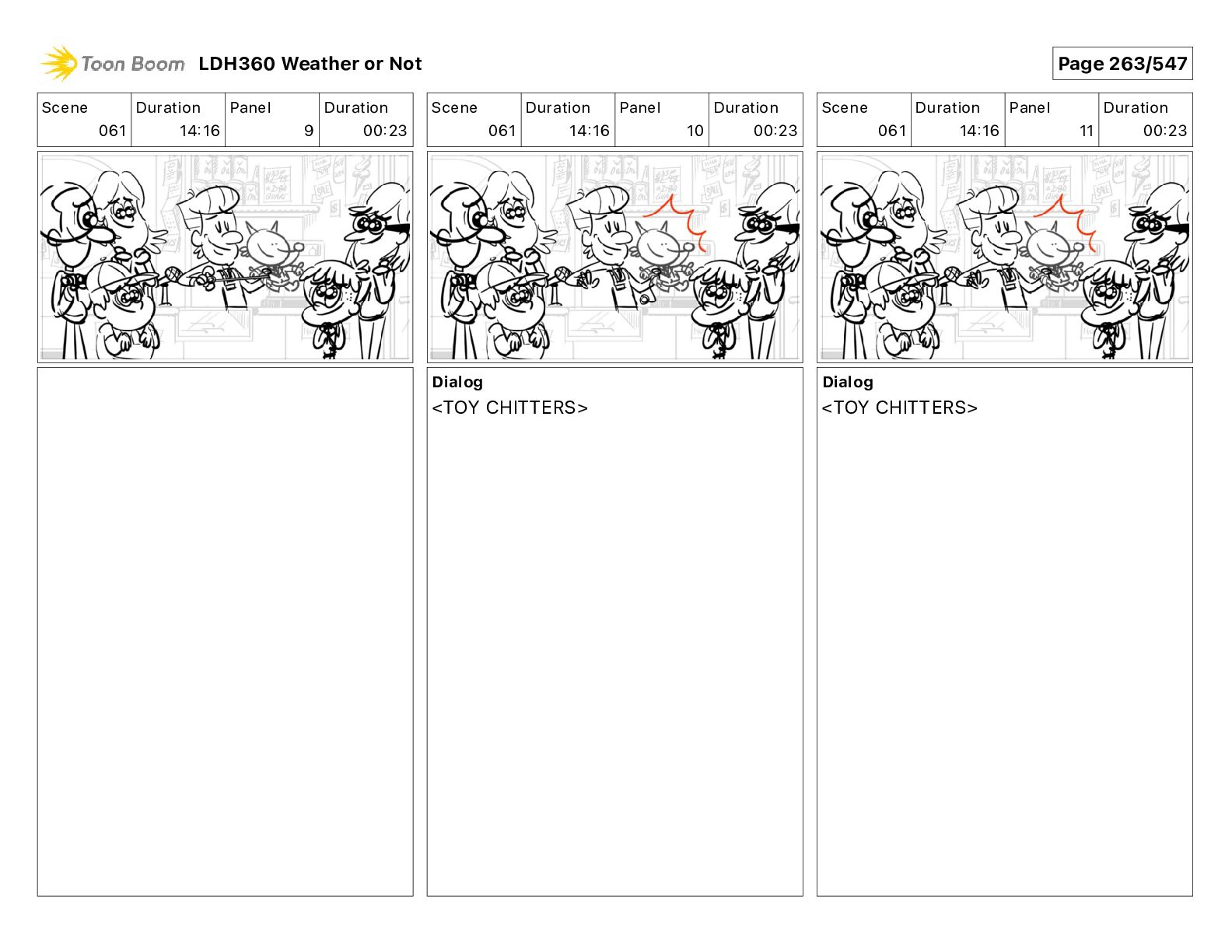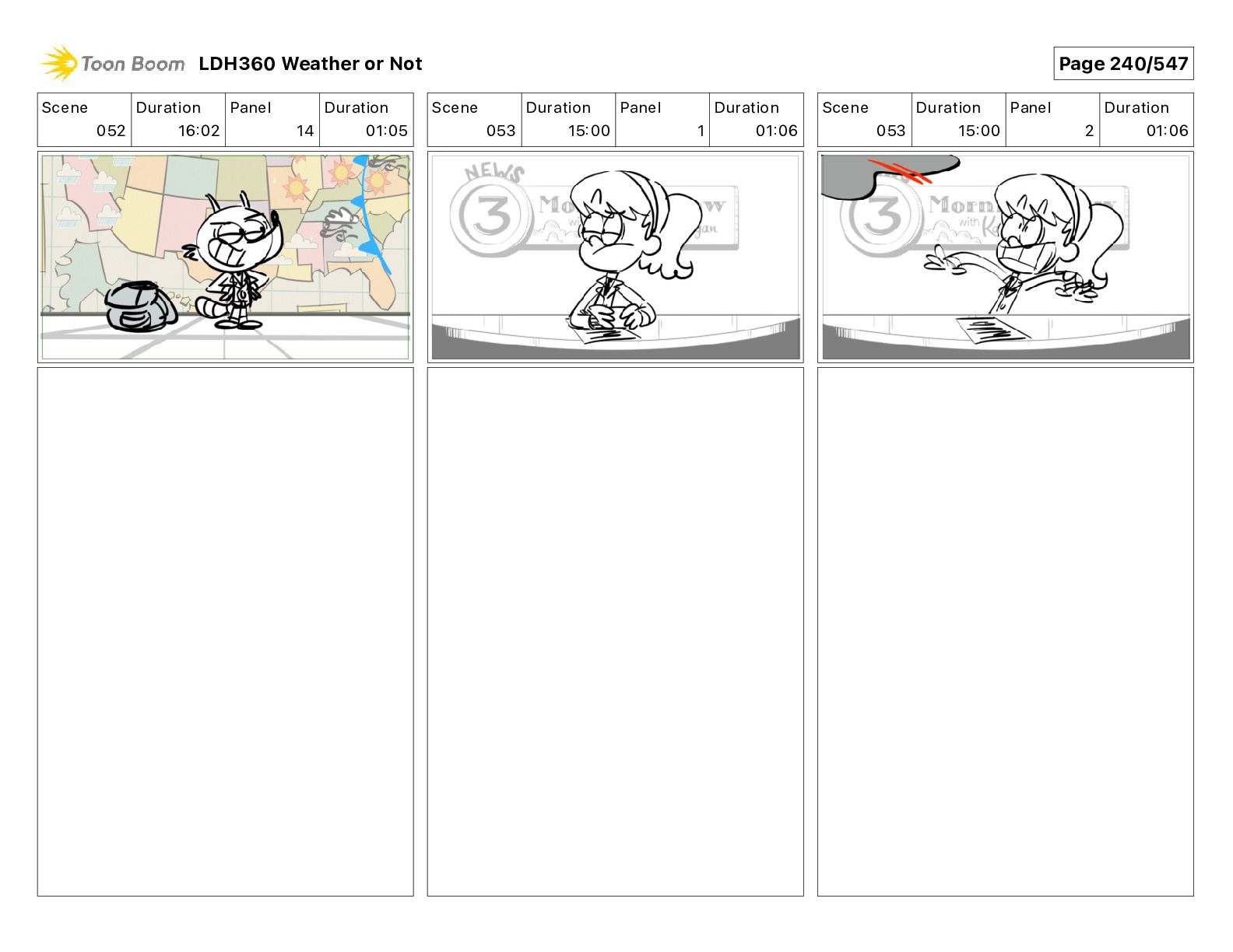 Dialog 7 FLIP I donʼt care. Scene 012 Duration 16 00 Panel 15 Duration 01 00 Dialog 8 LINCOLN We need some advice. Scene 012 Duration 16 00 Panel 16 Duration 01 00 LDH360 Weather or Not Page 56/547