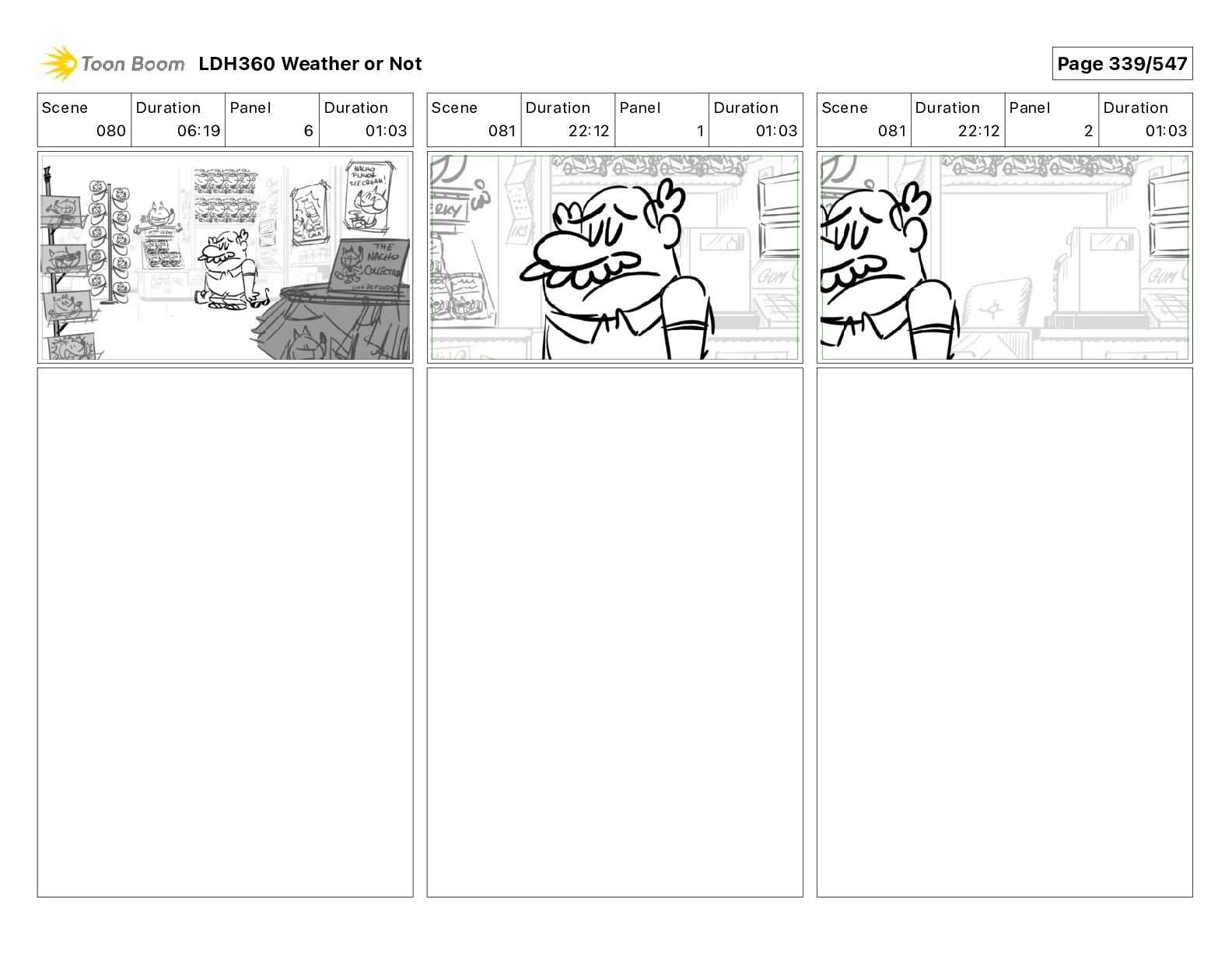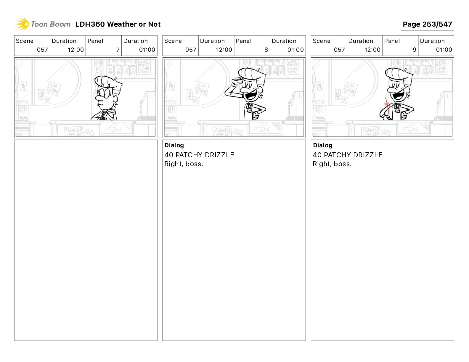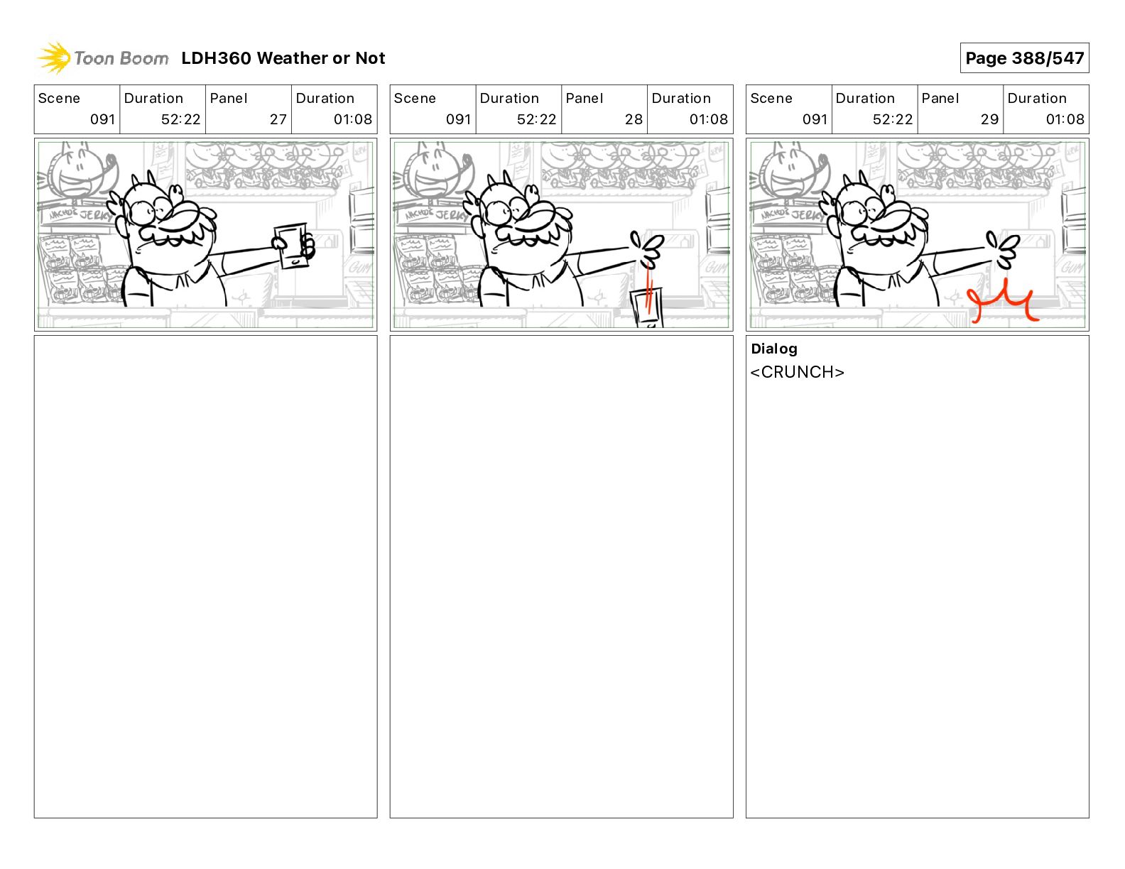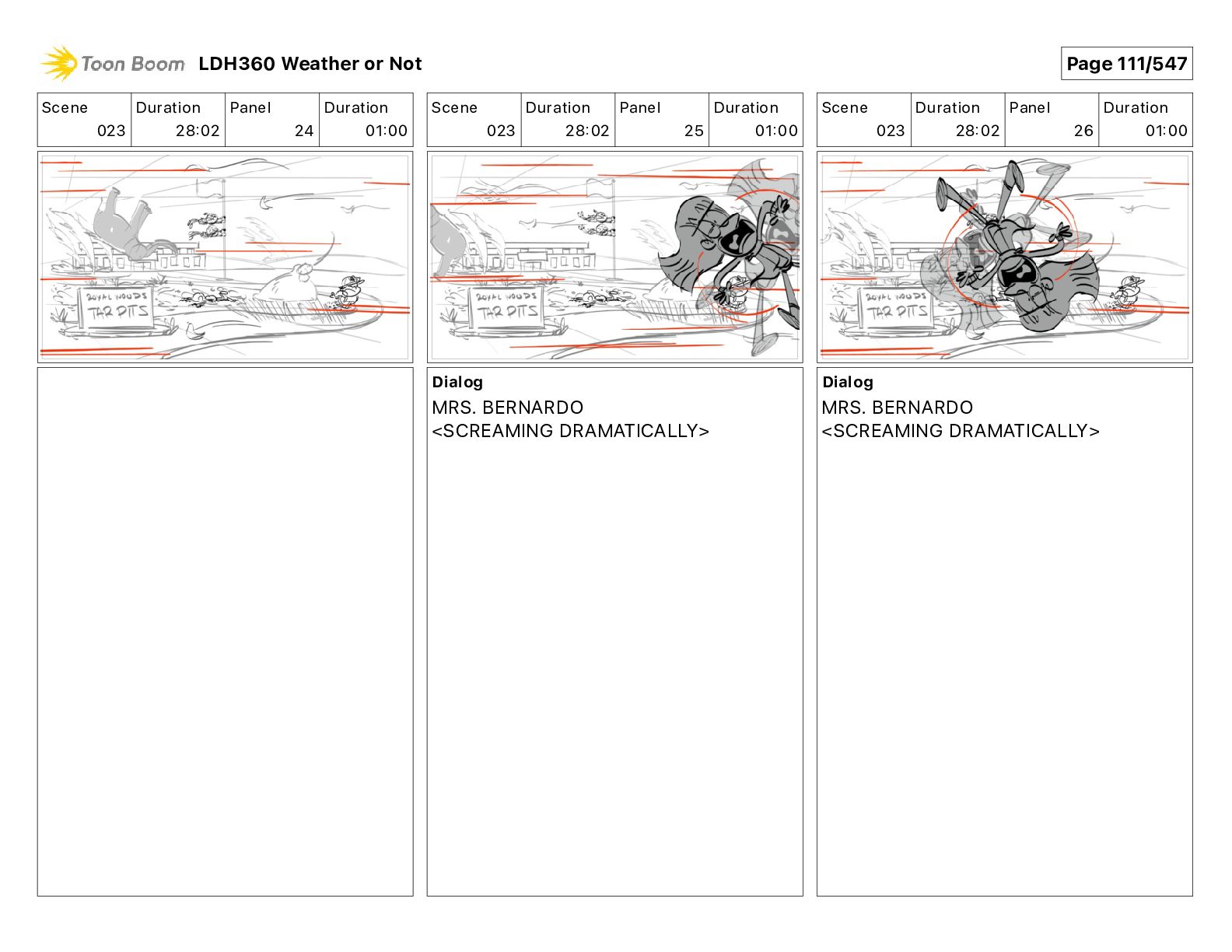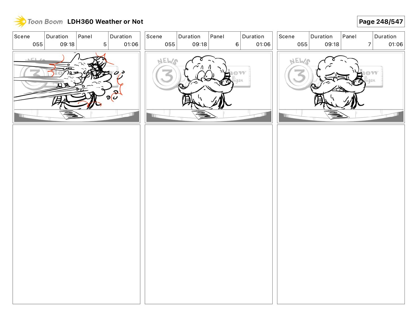 Dialog 7 FLIP I donʼt care. Scene 012 Duration 16 00 Panel 15 Duration 01 00 Dialog 8 LINCOLN We need some advice. Scene 012 Duration 16 00 Panel 16 Duration 01 00 LDH360 Weather or Not Page 56/547