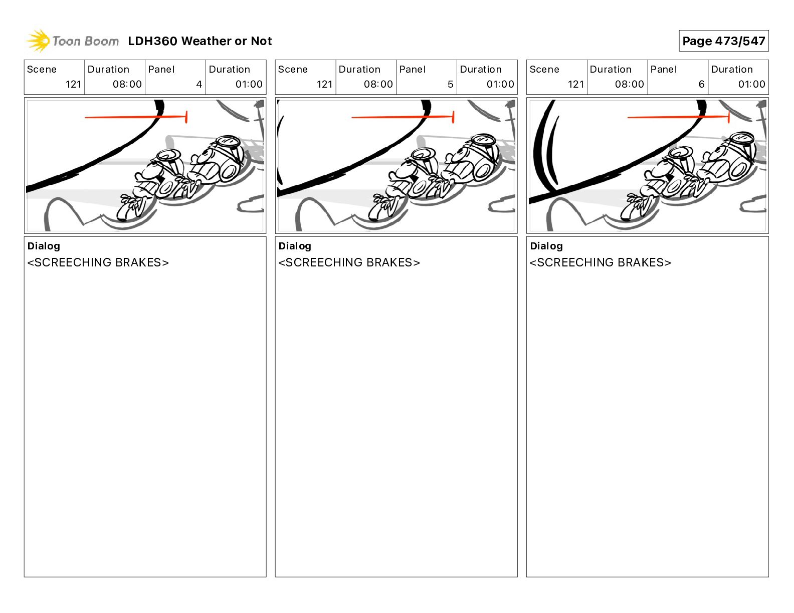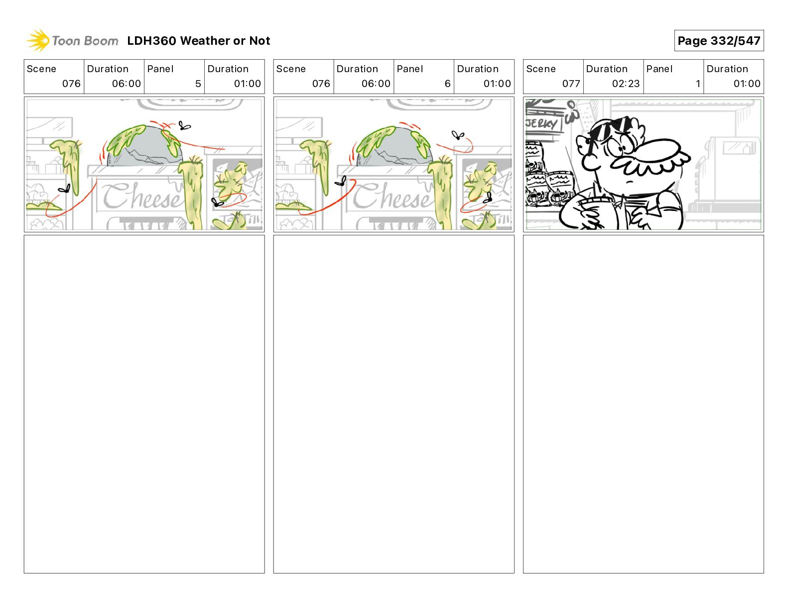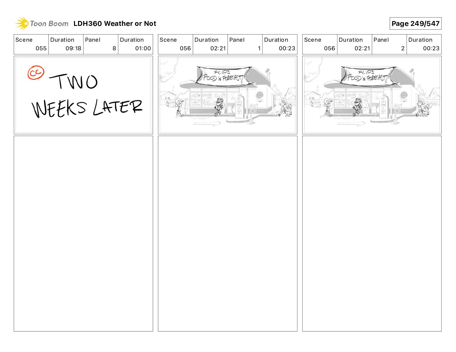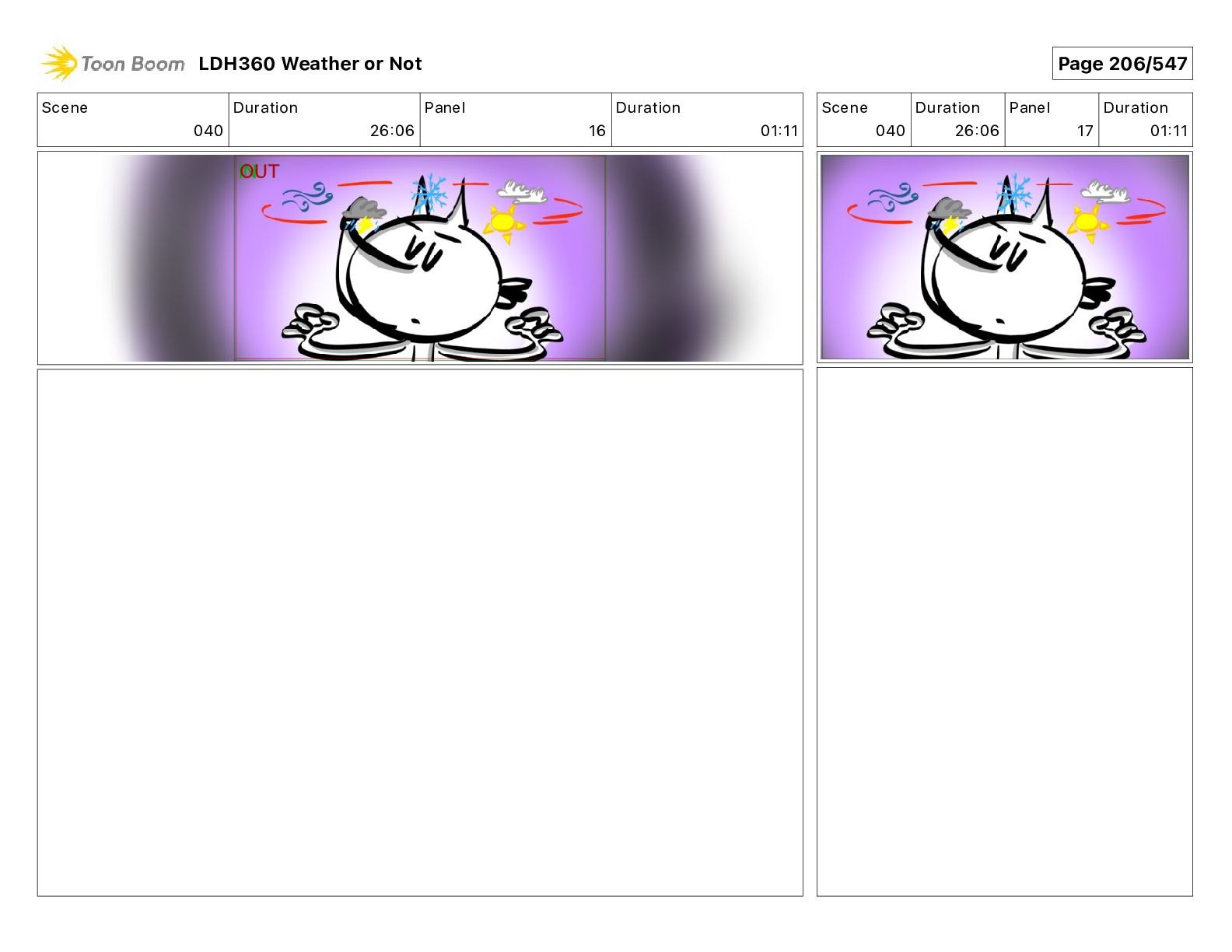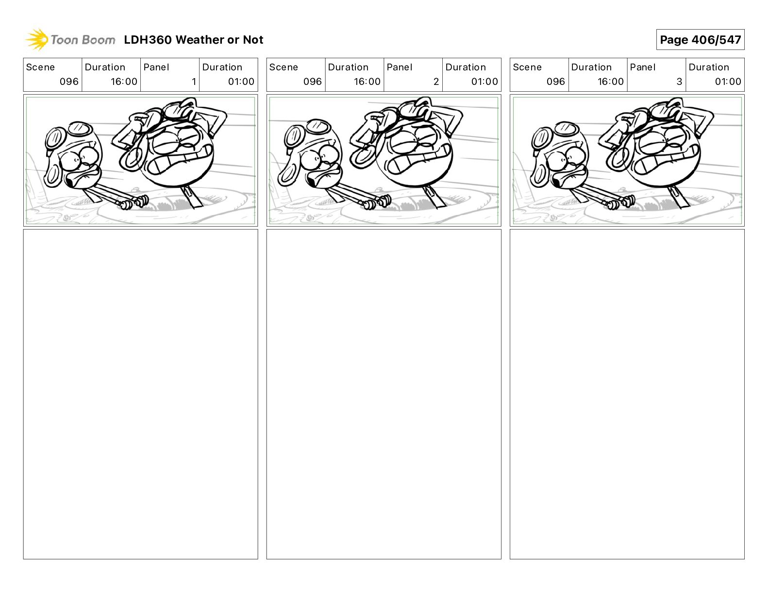 Dialog 7 FLIP I donʼt care. Scene 012 Duration 16 00 Panel 15 Duration 01 00 Dialog 8 LINCOLN We need some advice. Scene 012 Duration 16 00 Panel 16 Duration 01 00 LDH360 Weather or Not Page 56/547