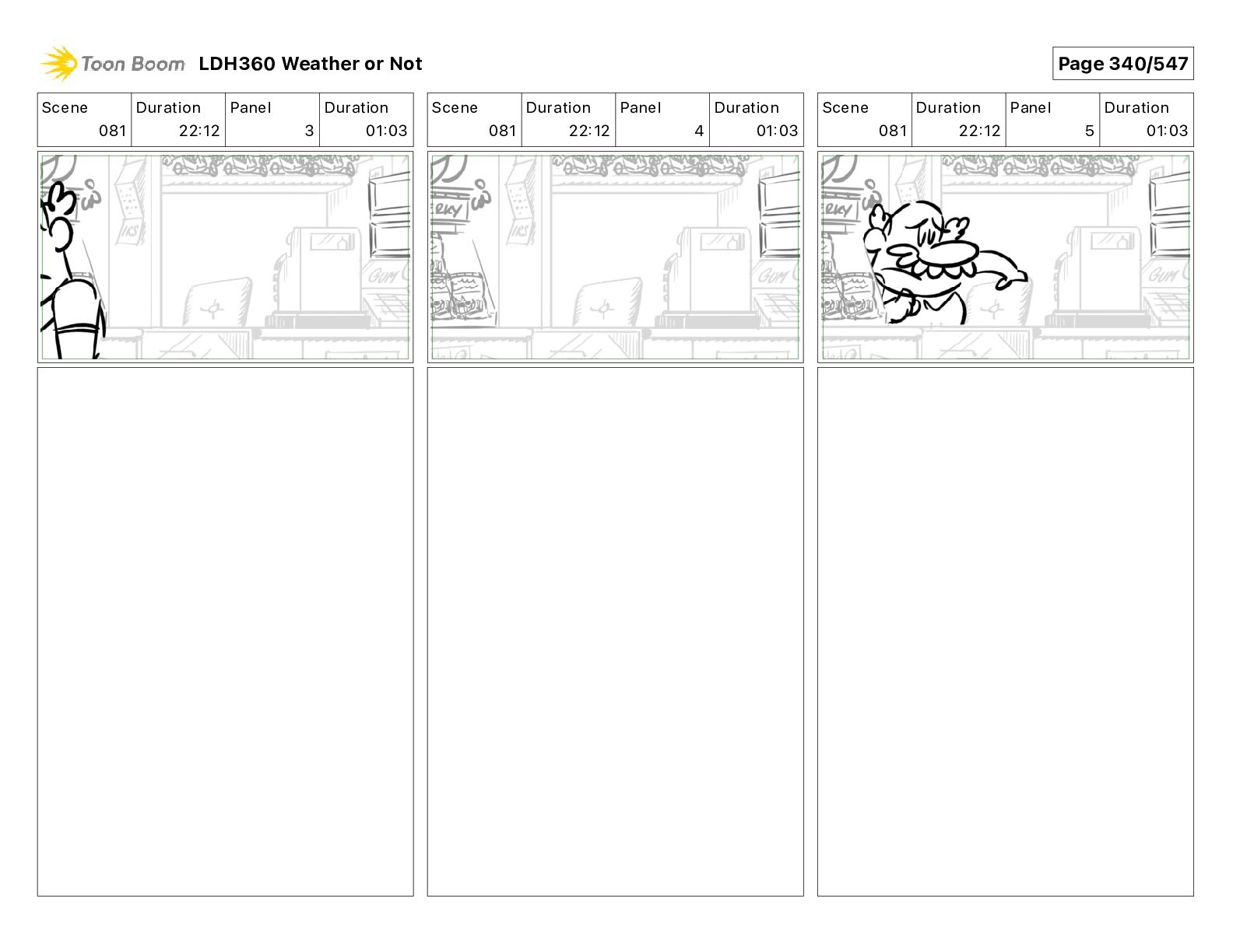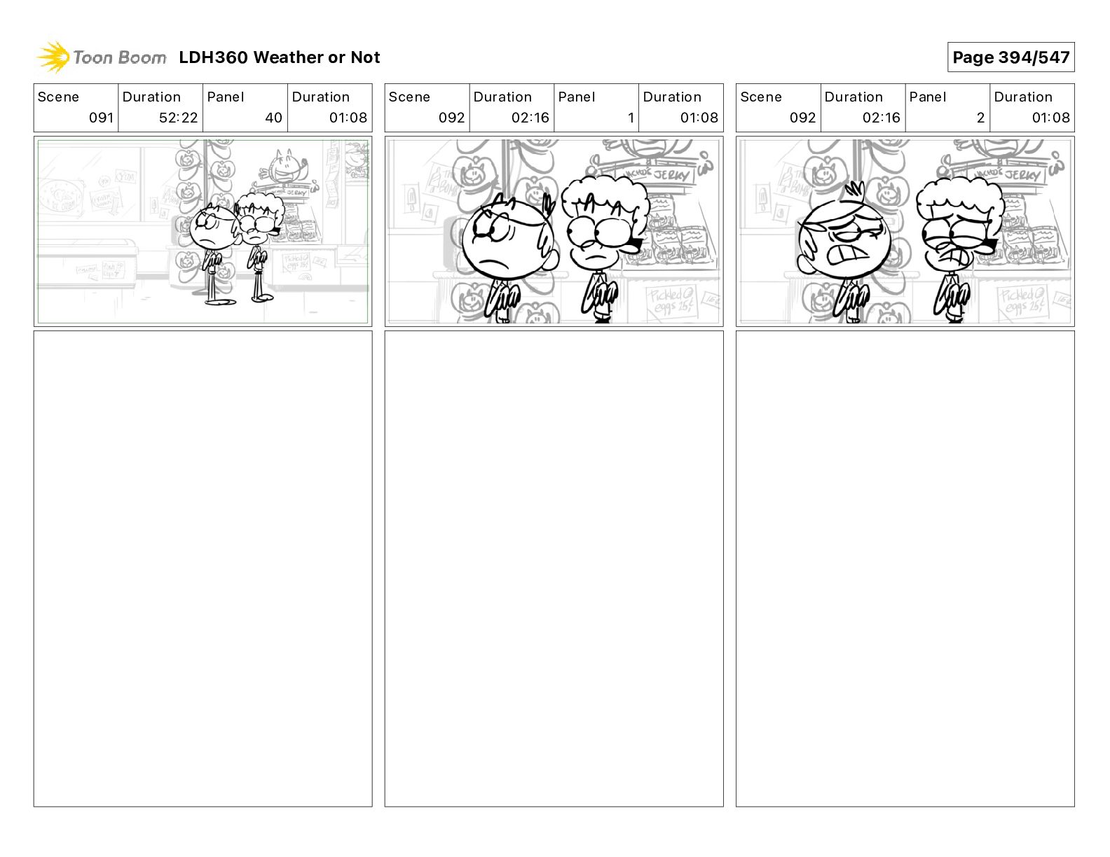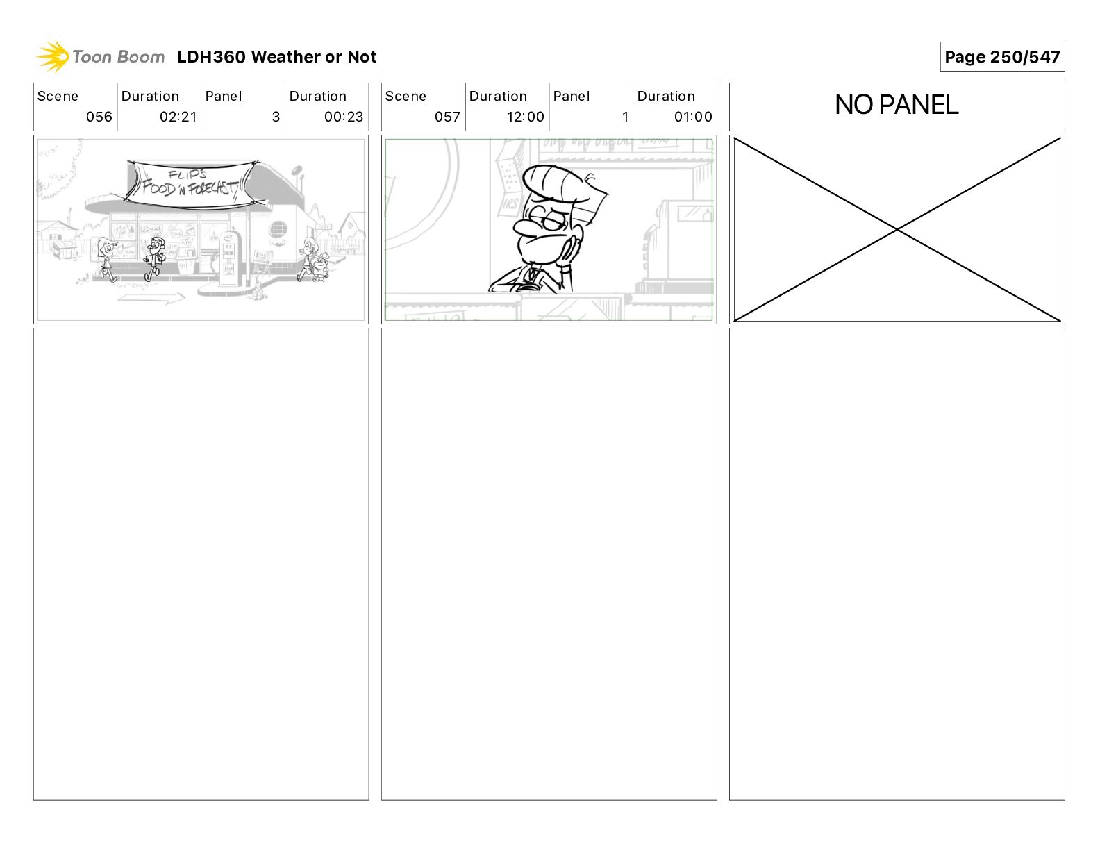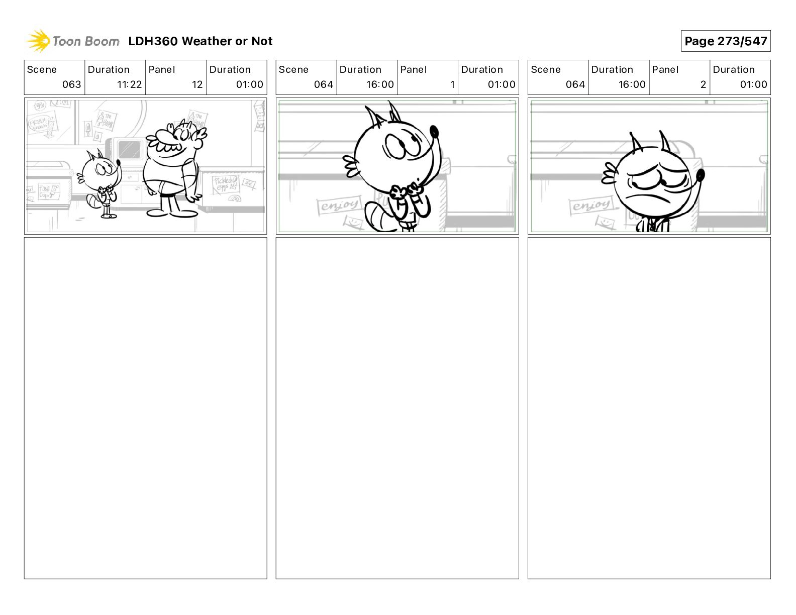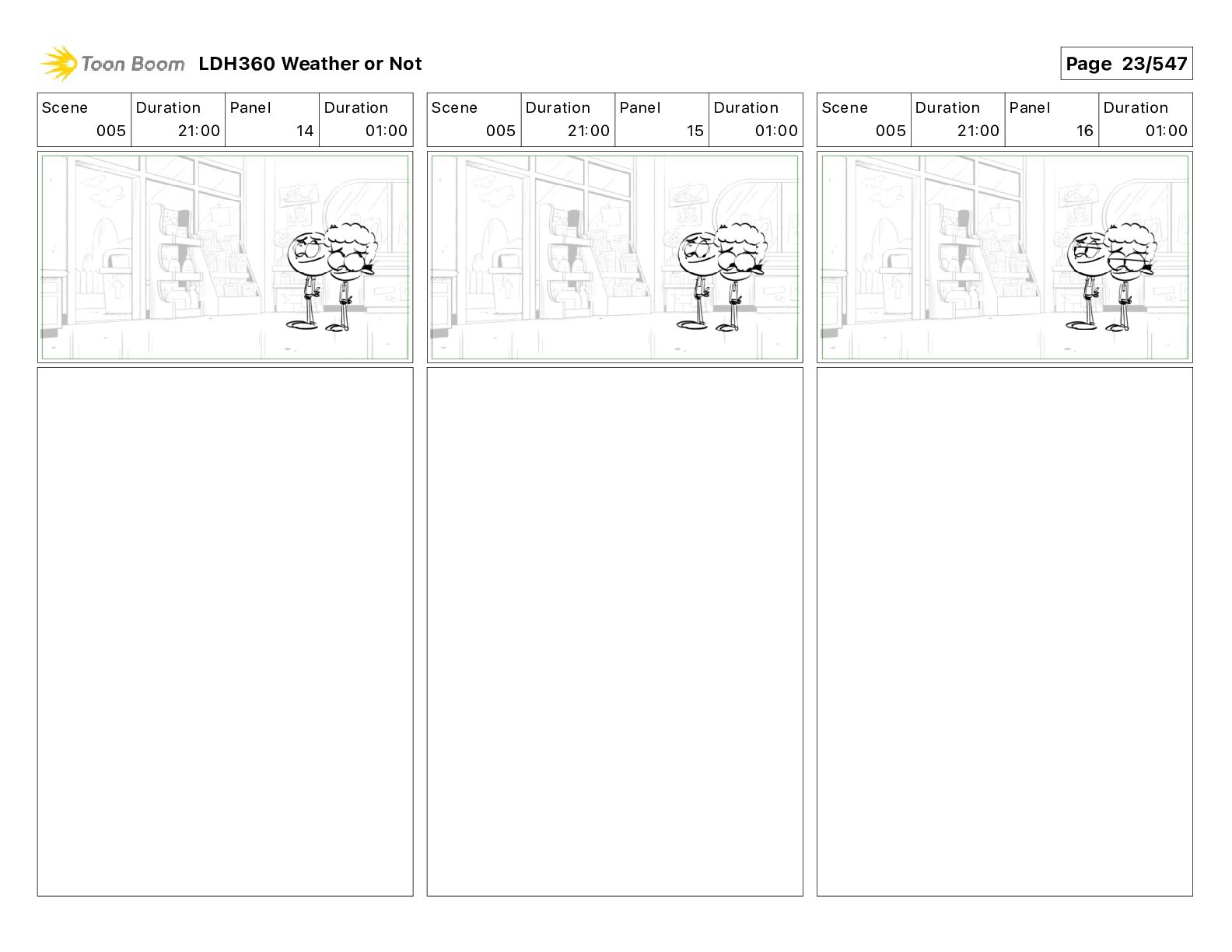 Dialog 7 FLIP I donʼt care. Scene 012 Duration 16 00 Panel 15 Duration 01 00 Dialog 8 LINCOLN We need some advice. Scene 012 Duration 16 00 Panel 16 Duration 01 00 LDH360 Weather or Not Page 56/547