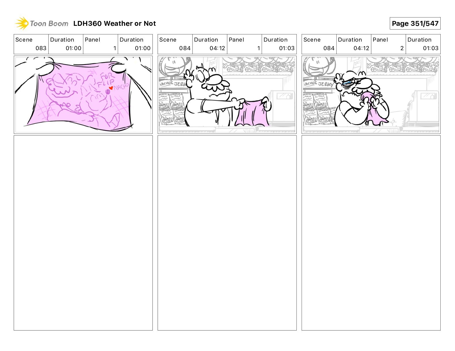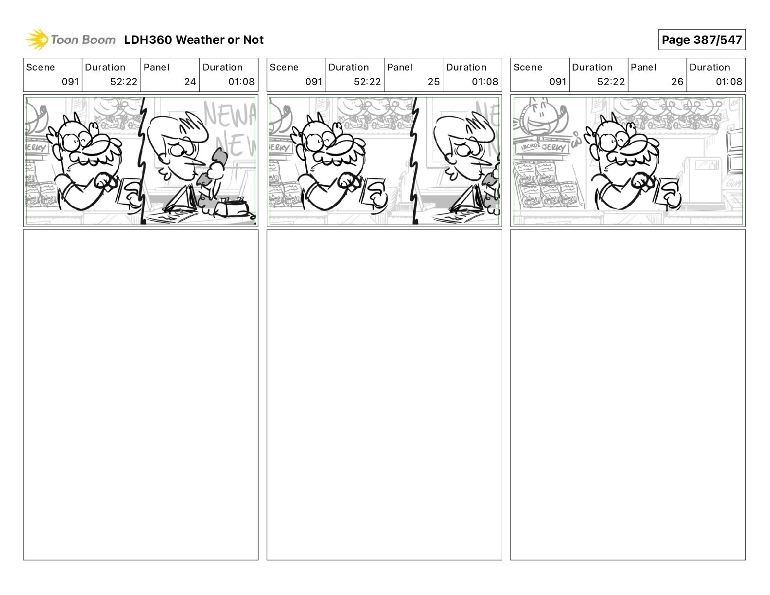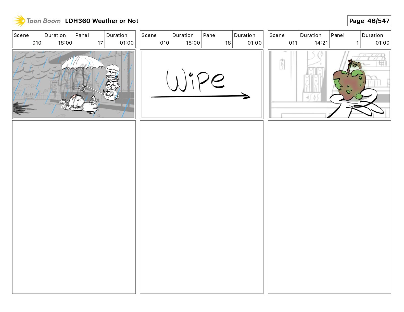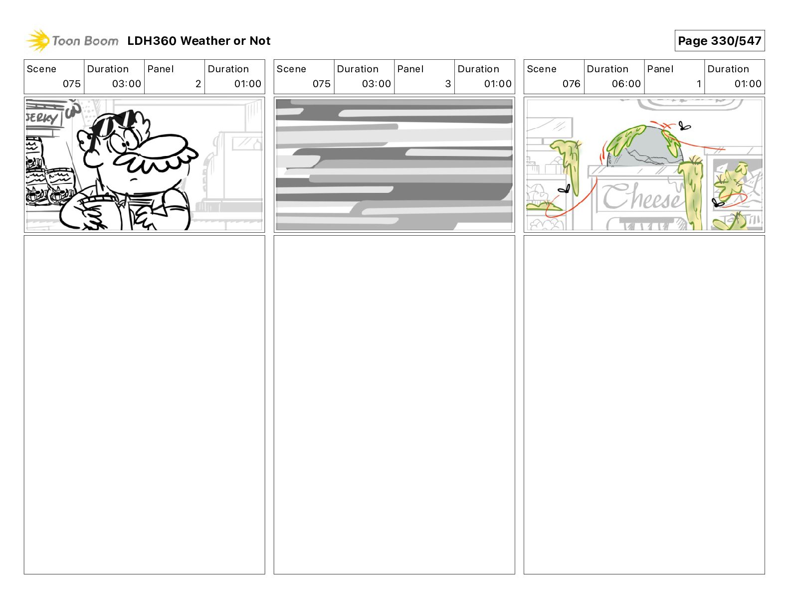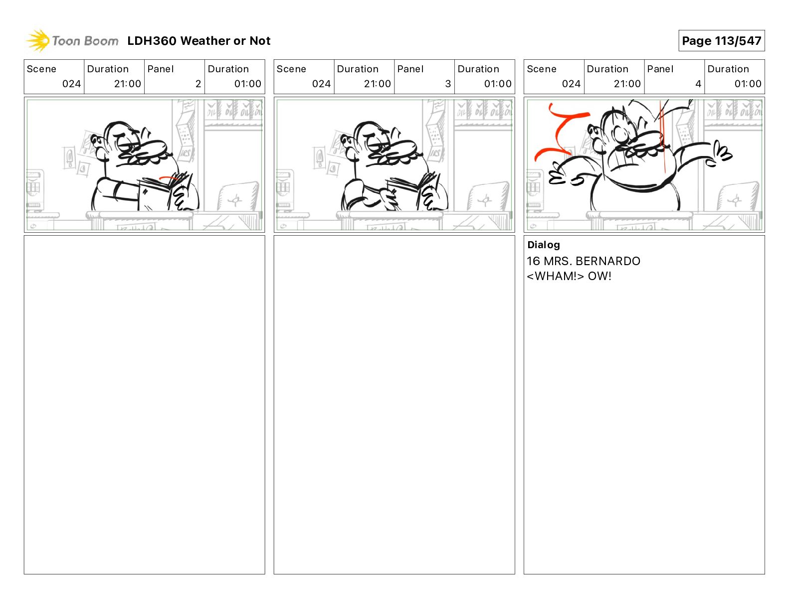 Dialog 7 FLIP I donʼt care. Scene 012 Duration 16 00 Panel 15 Duration 01 00 Dialog 8 LINCOLN We need some advice. Scene 012 Duration 16 00 Panel 16 Duration 01 00 LDH360 Weather or Not Page 56/547