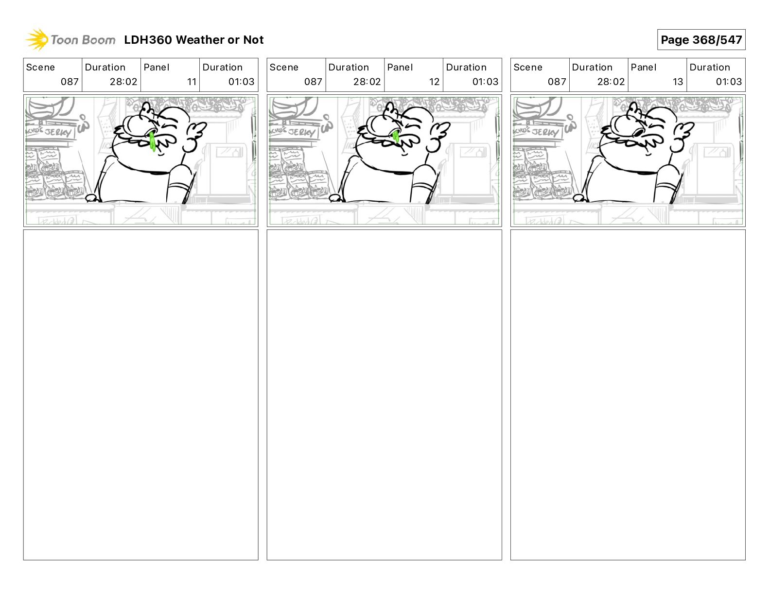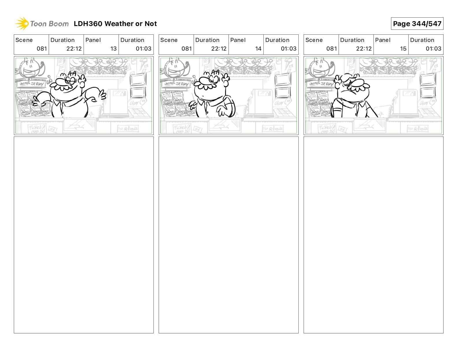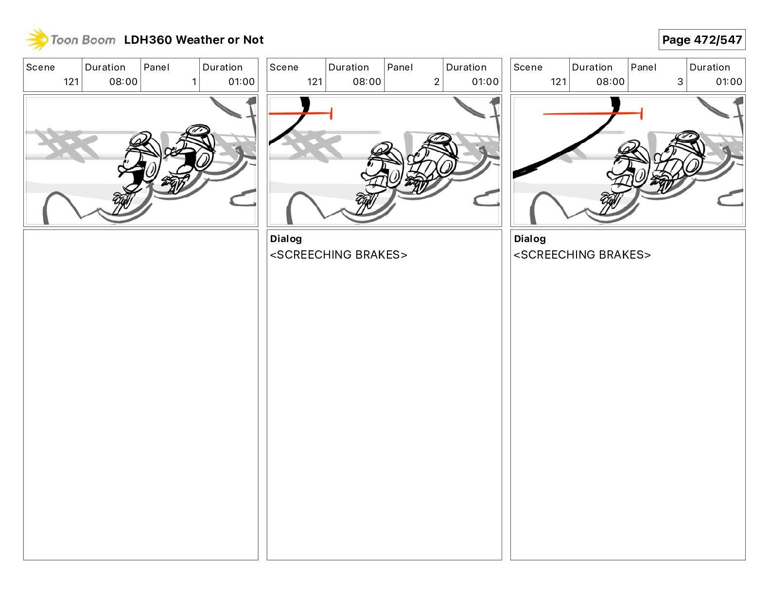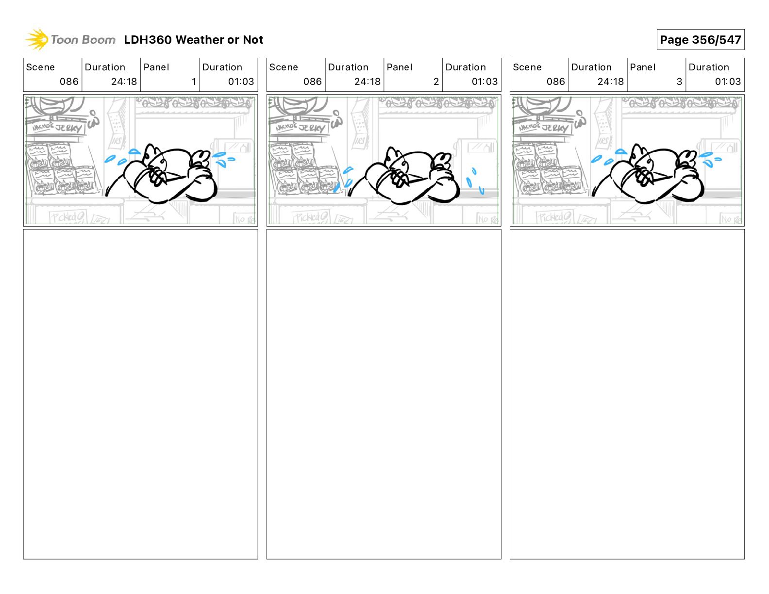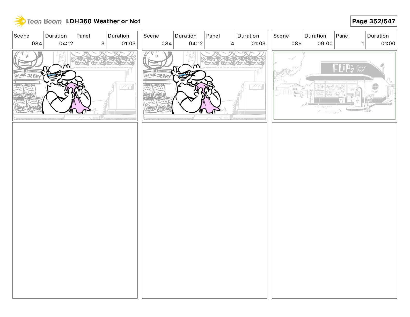 Dialog 7 FLIP I donʼt care. Scene 012 Duration 16 00 Panel 15 Duration 01 00 Dialog 8 LINCOLN We need some advice. Scene 012 Duration 16 00 Panel 16 Duration 01 00 LDH360 Weather or Not Page 56/547