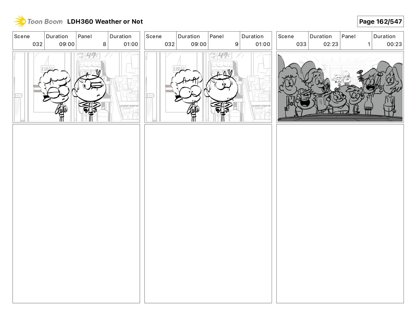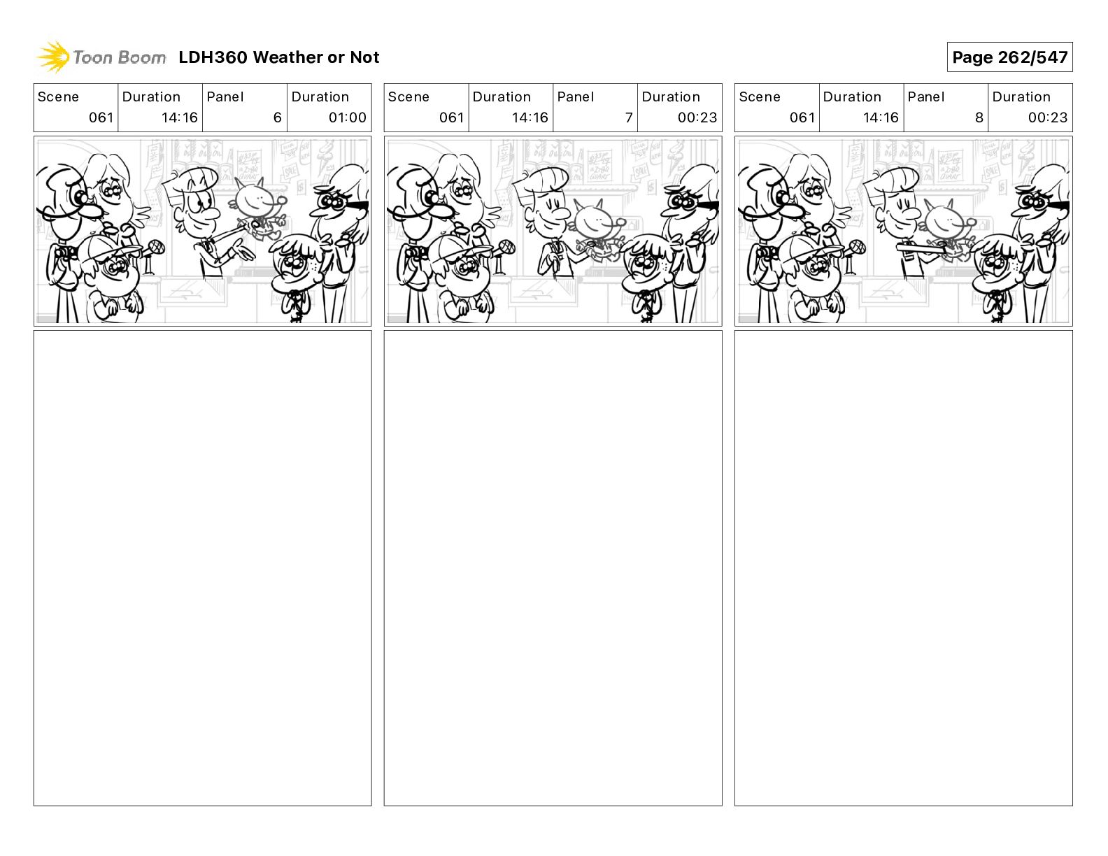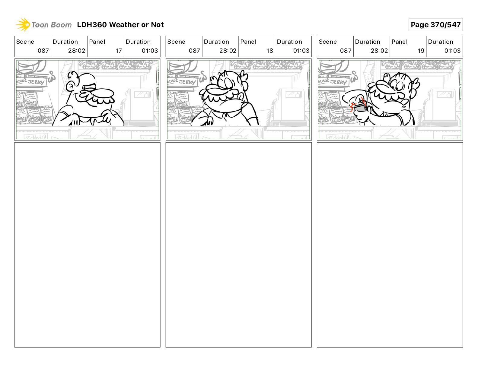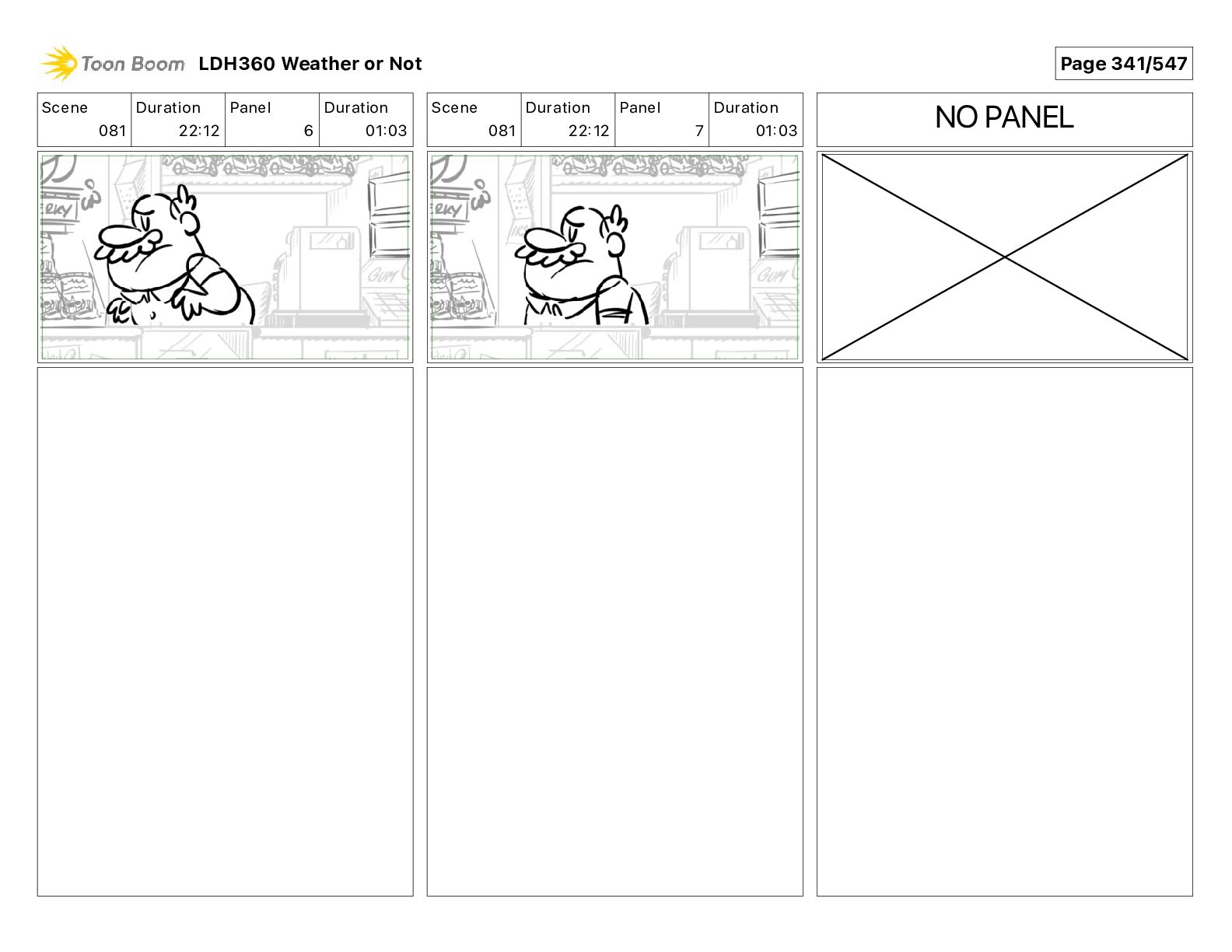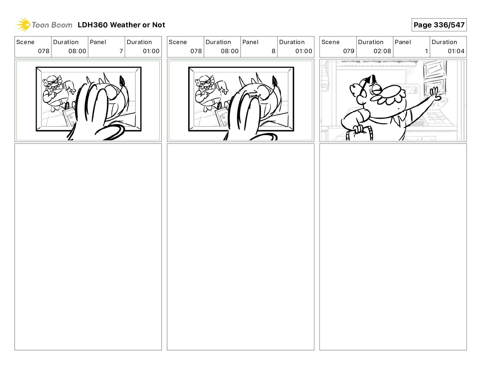 Dialog 7 FLIP I donʼt care. Scene 012 Duration 16 00 Panel 15 Duration 01 00 Dialog 8 LINCOLN We need some advice. Scene 012 Duration 16 00 Panel 16 Duration 01 00 LDH360 Weather or Not Page 56/547