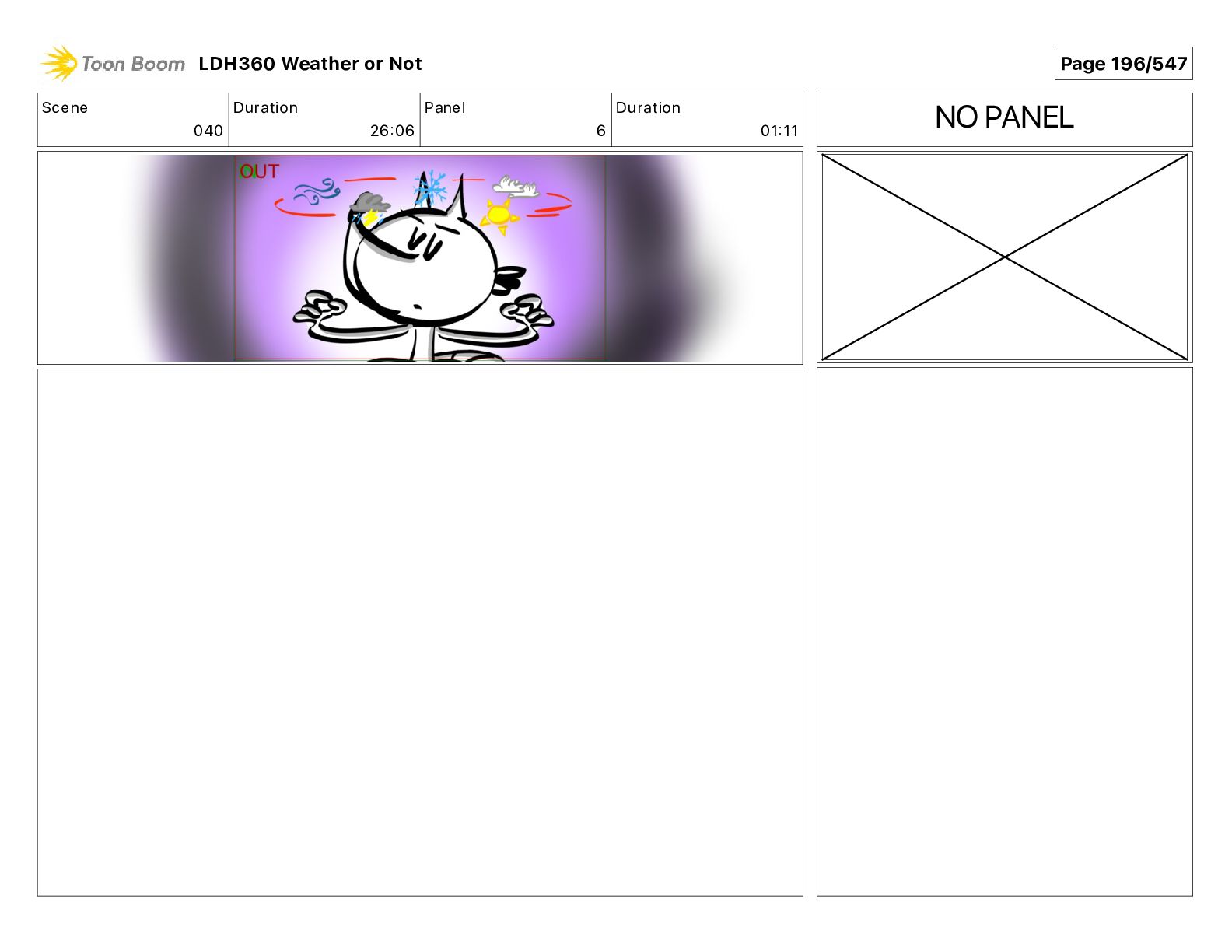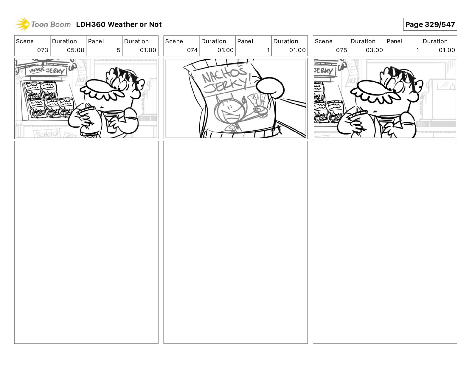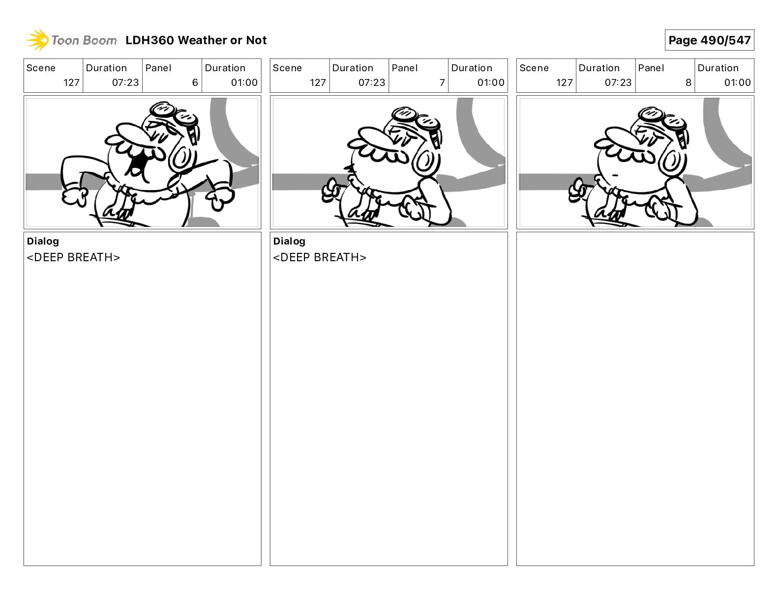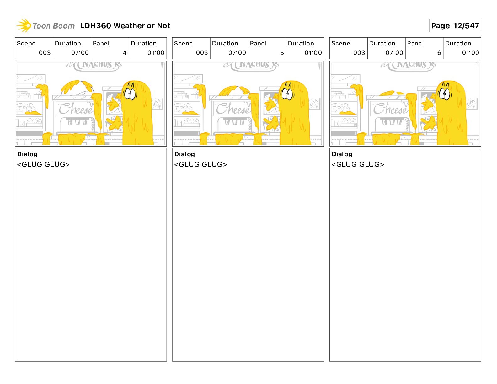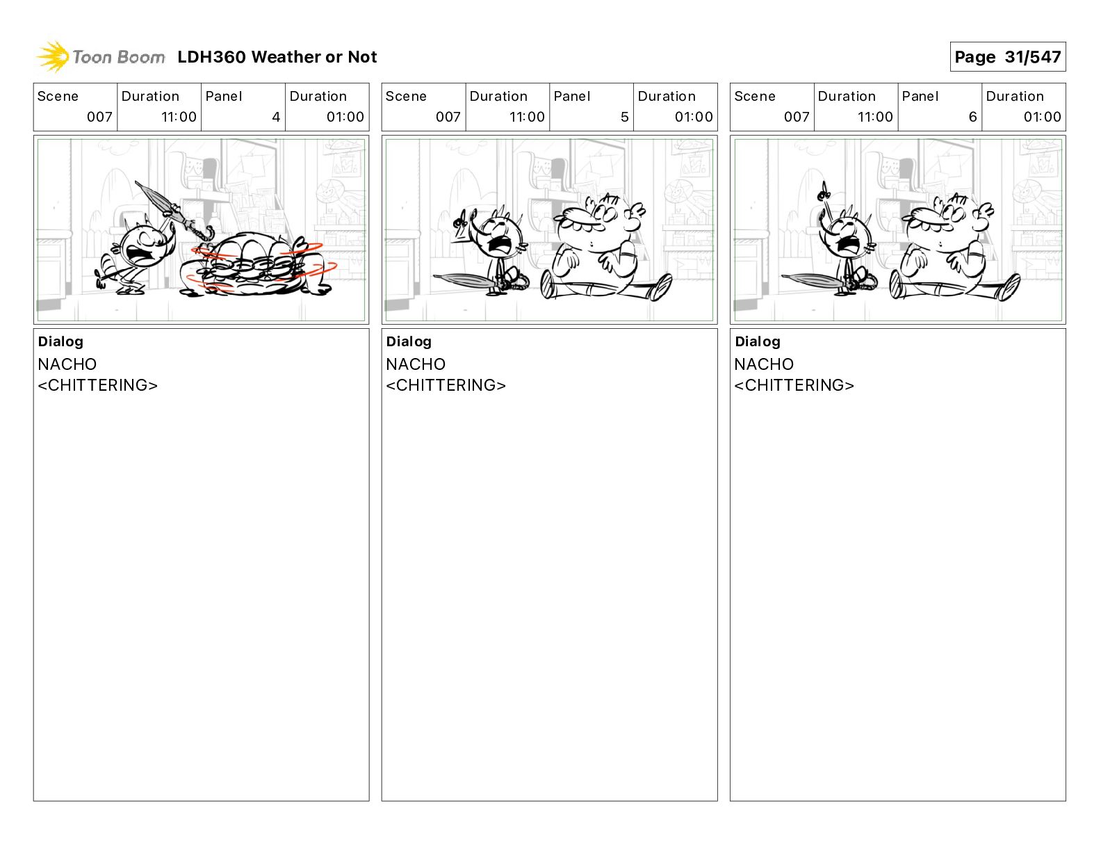 Dialog 1 FLIP All right, Nacho. Scene 002 Duration 23 00 Panel 4 Duration 01 00 Dialog 1 FLIP Time to pick a vacation destination. Scene 002 Duration 23 00 Panel 5 Duration 01 00 Dialog 1 FLIP Time to pick a vacation destination. LDH360 Weather or Not Page 4/547