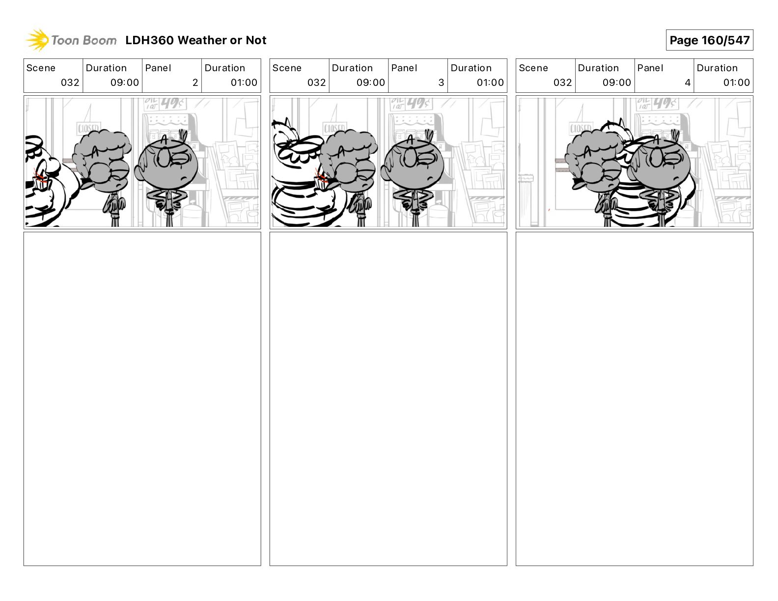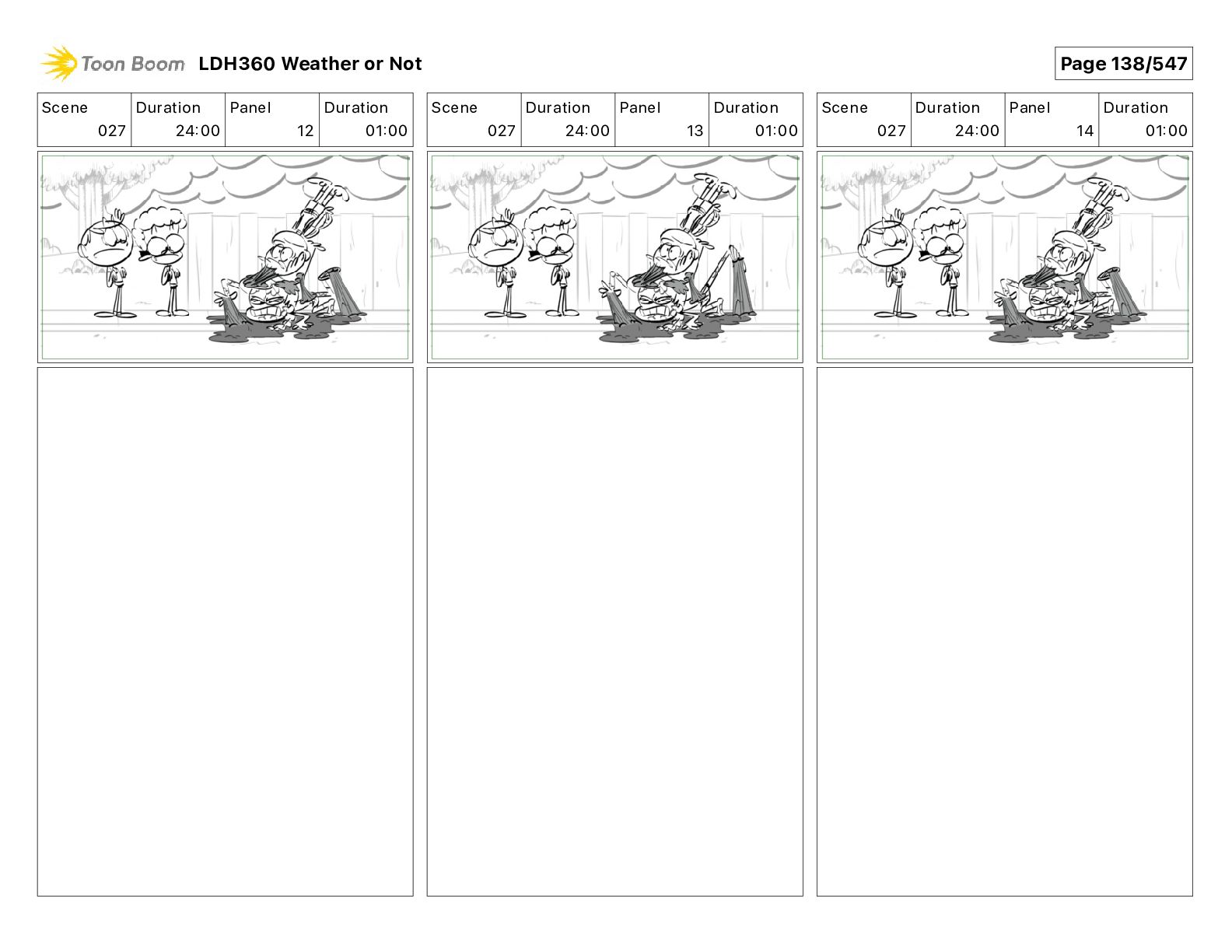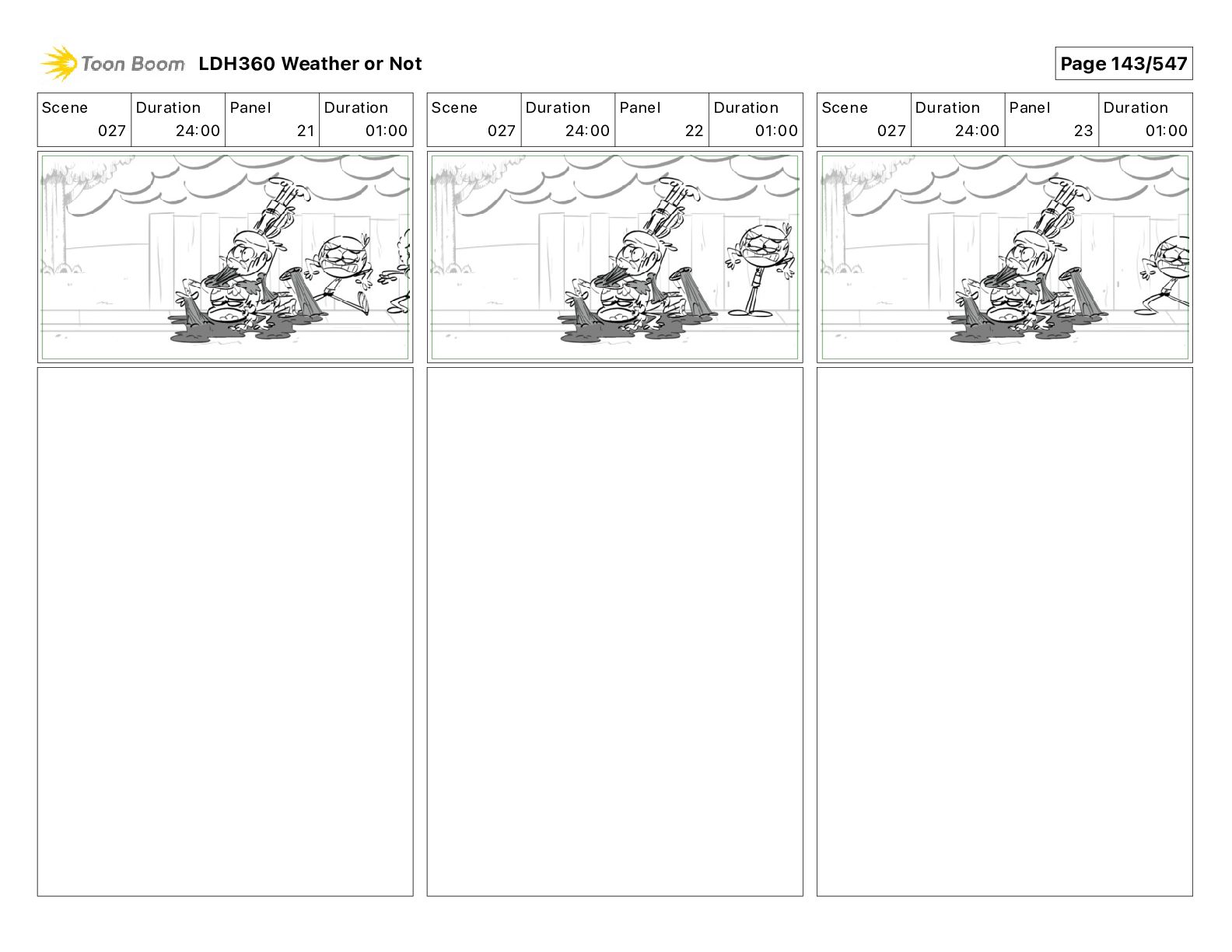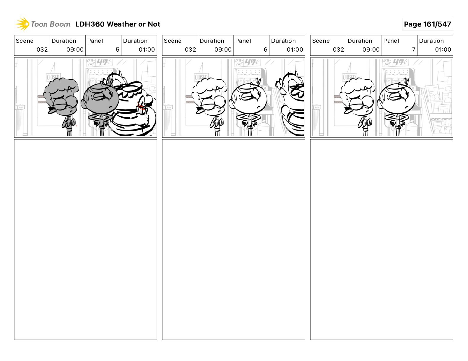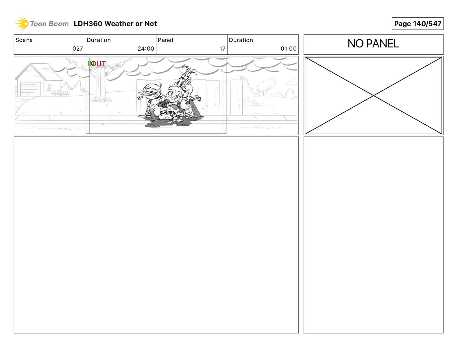 Dialog 84 LINCOLN But we just remembered-- Scene 138 Duration 19 00 Panel 11 Duration 01 00 Scene 138 Duration 19 00 Panel 12 Duration 01 00 Dialog 85 LINCOLN/CLYDE --we have school/--we have the dentist. LDH360 Weather or Not Page 531/547