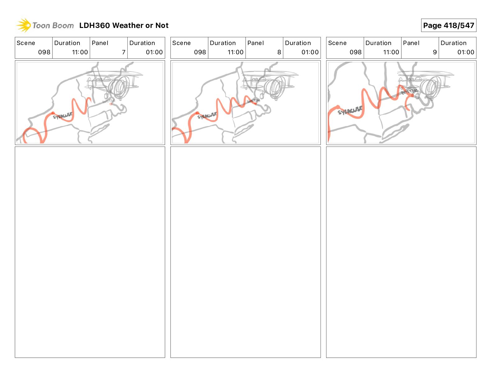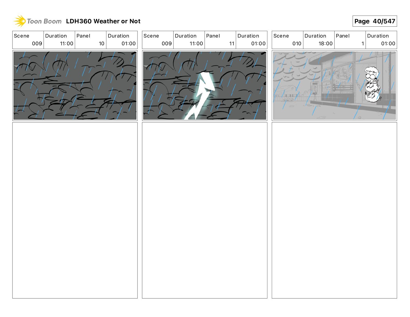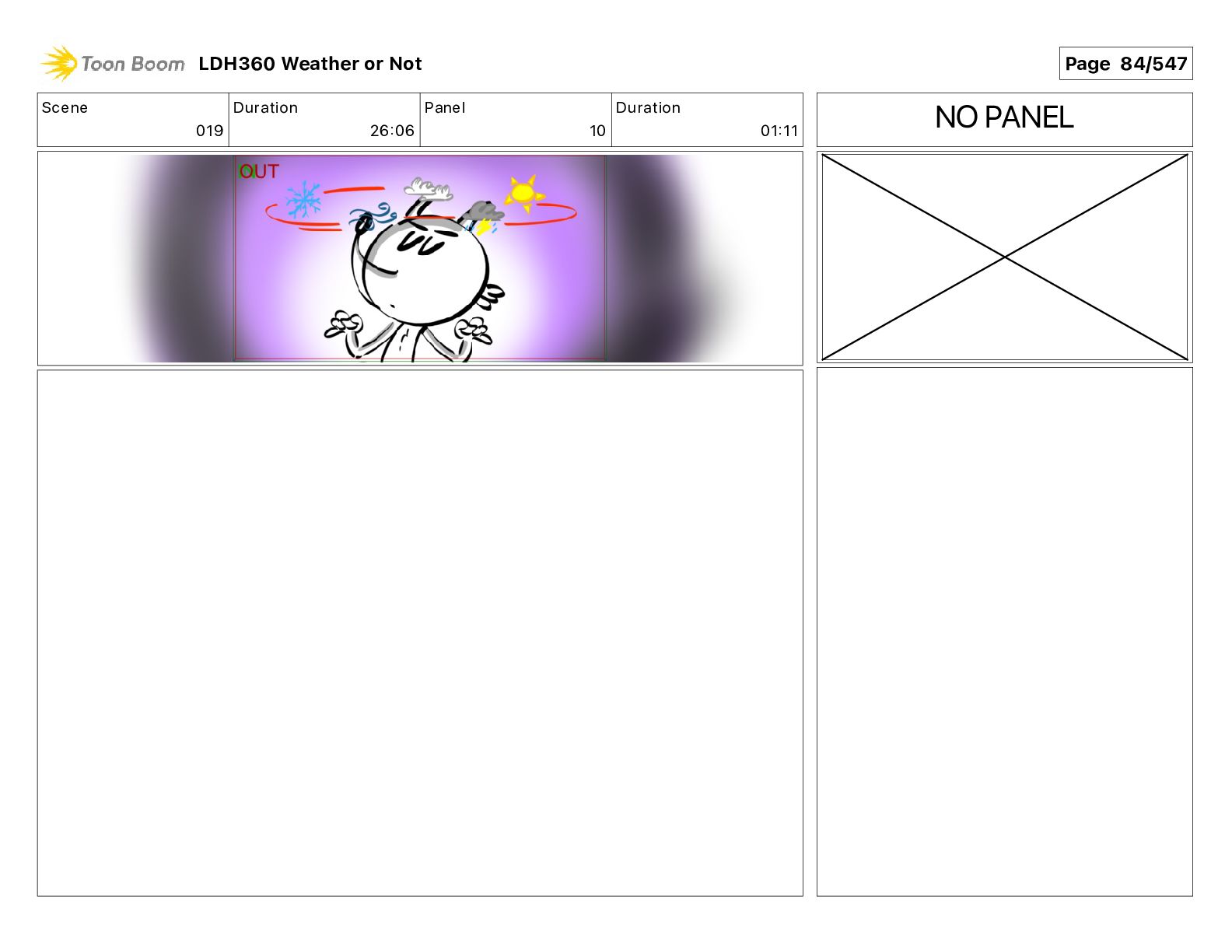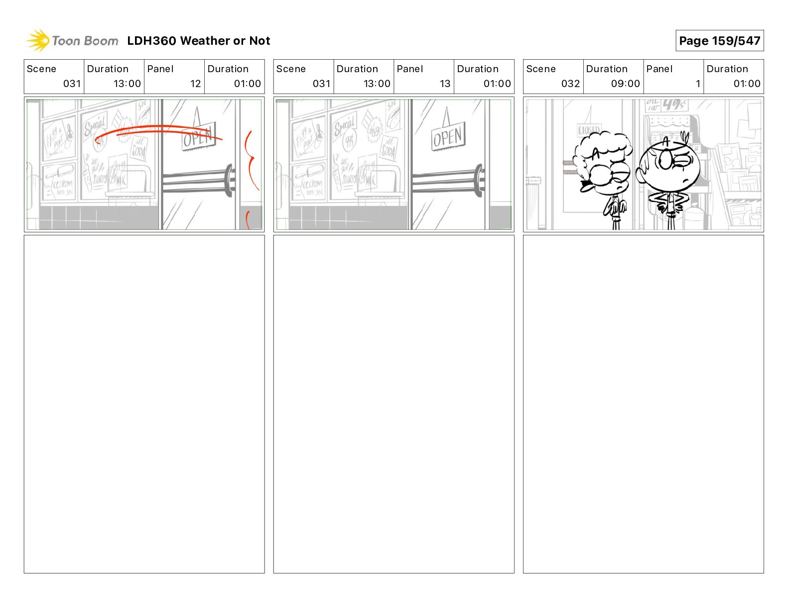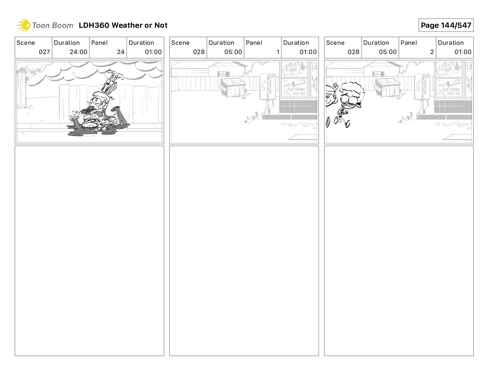 Dialog 84 LINCOLN But we just remembered-- Scene 138 Duration 19 00 Panel 11 Duration 01 00 Scene 138 Duration 19 00 Panel 12 Duration 01 00 Dialog 85 LINCOLN/CLYDE --we have school/--we have the dentist. LDH360 Weather or Not Page 531/547