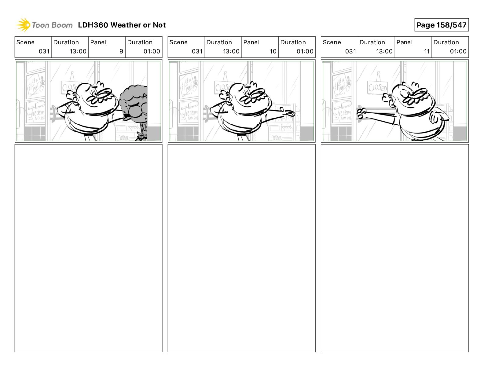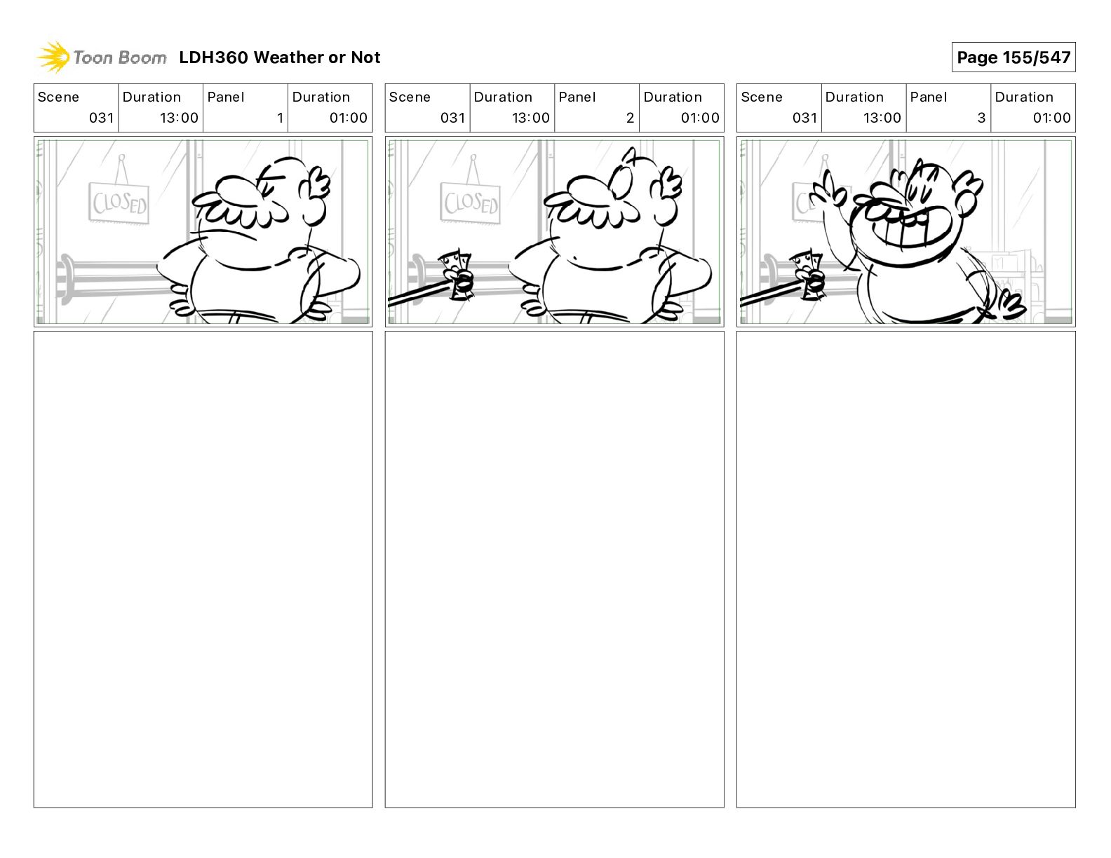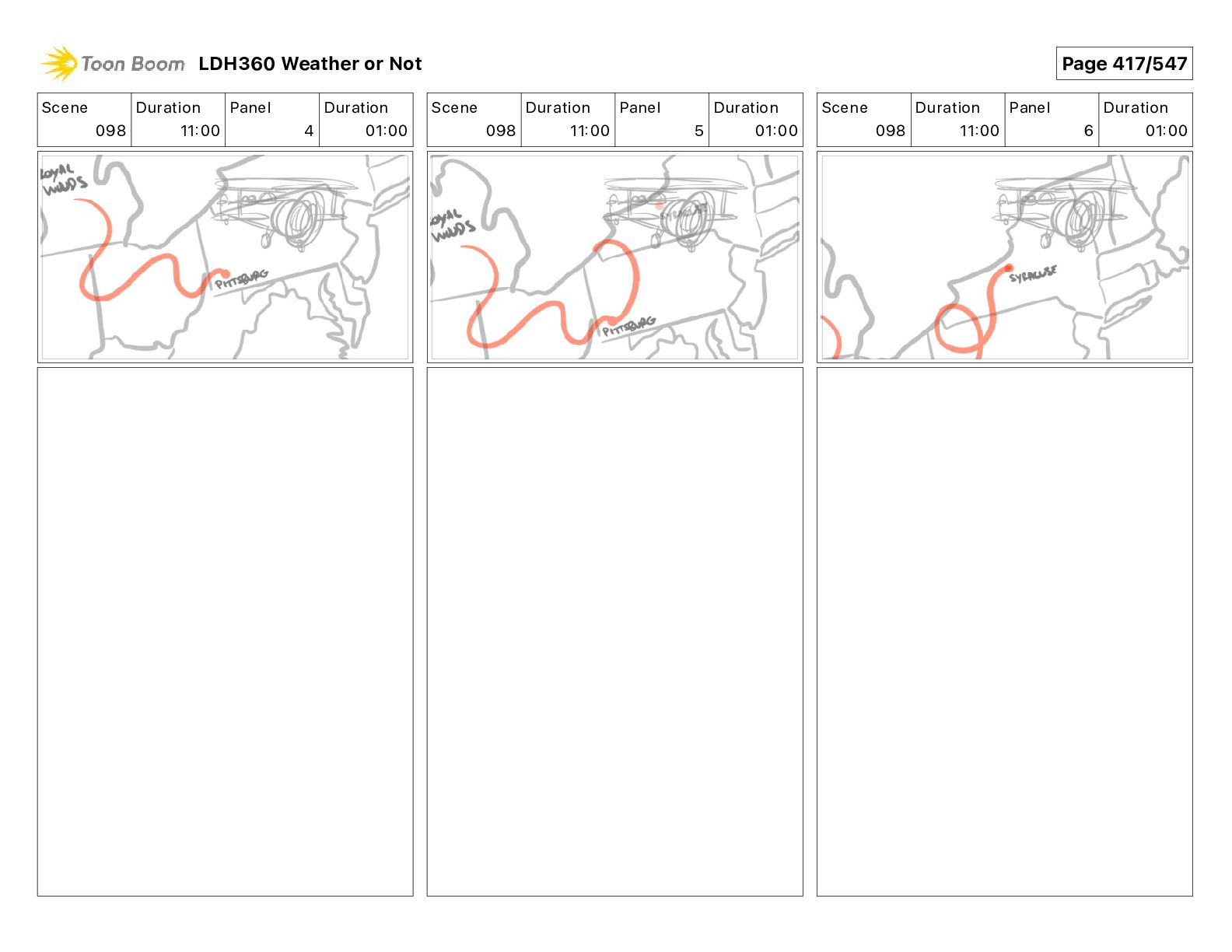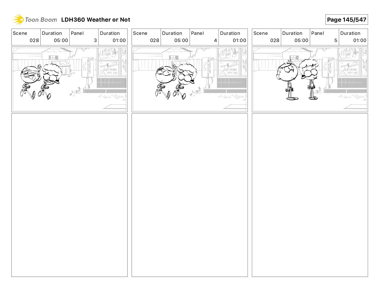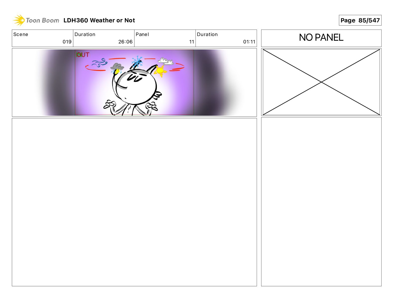 Dialog 84 LINCOLN But we just remembered-- Scene 138 Duration 19 00 Panel 11 Duration 01 00 Scene 138 Duration 19 00 Panel 12 Duration 01 00 Dialog 85 LINCOLN/CLYDE --we have school/--we have the dentist. LDH360 Weather or Not Page 531/547