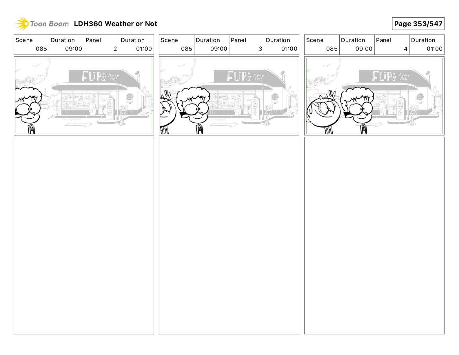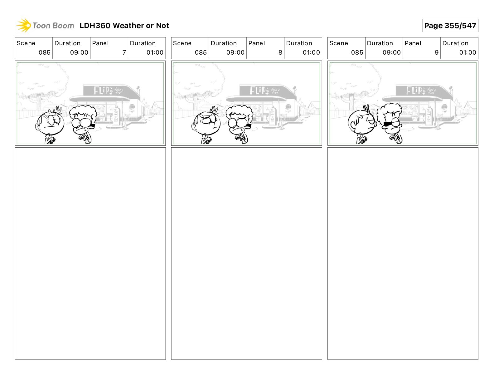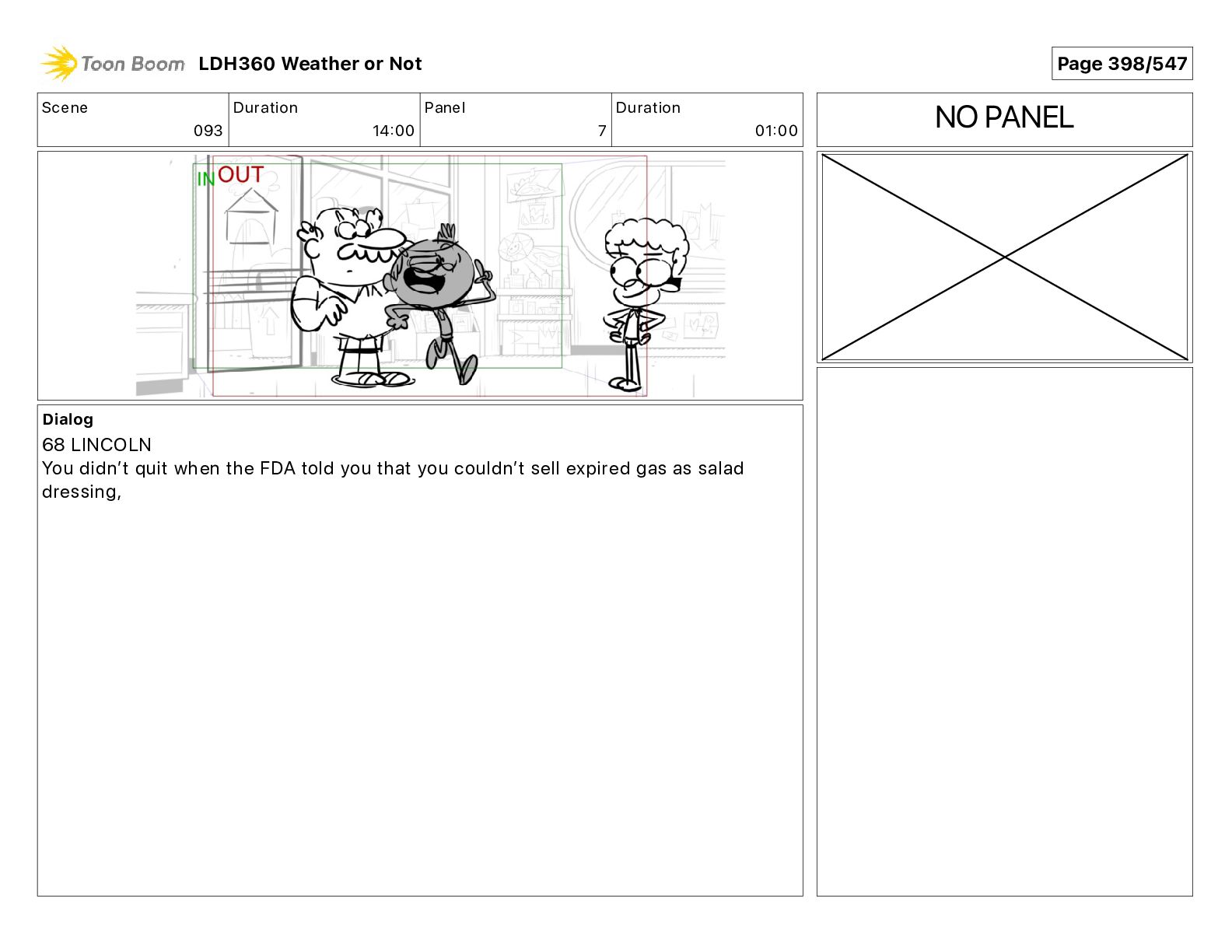 Dialog 3 LINCOLN Hey Flip! Whatʼs up? Scene 005 Duration 21 00 Panel 6 Duration 01 00 Dialog 3 LINCOLN Hey Flip! Whatʼs up? Scene 005 Duration 21 00 Panel 7 Duration 01 00 Dialog 4 FLIP The price of Flippees and my cholesterol. LDH360 Weather or Not Page 20/547
