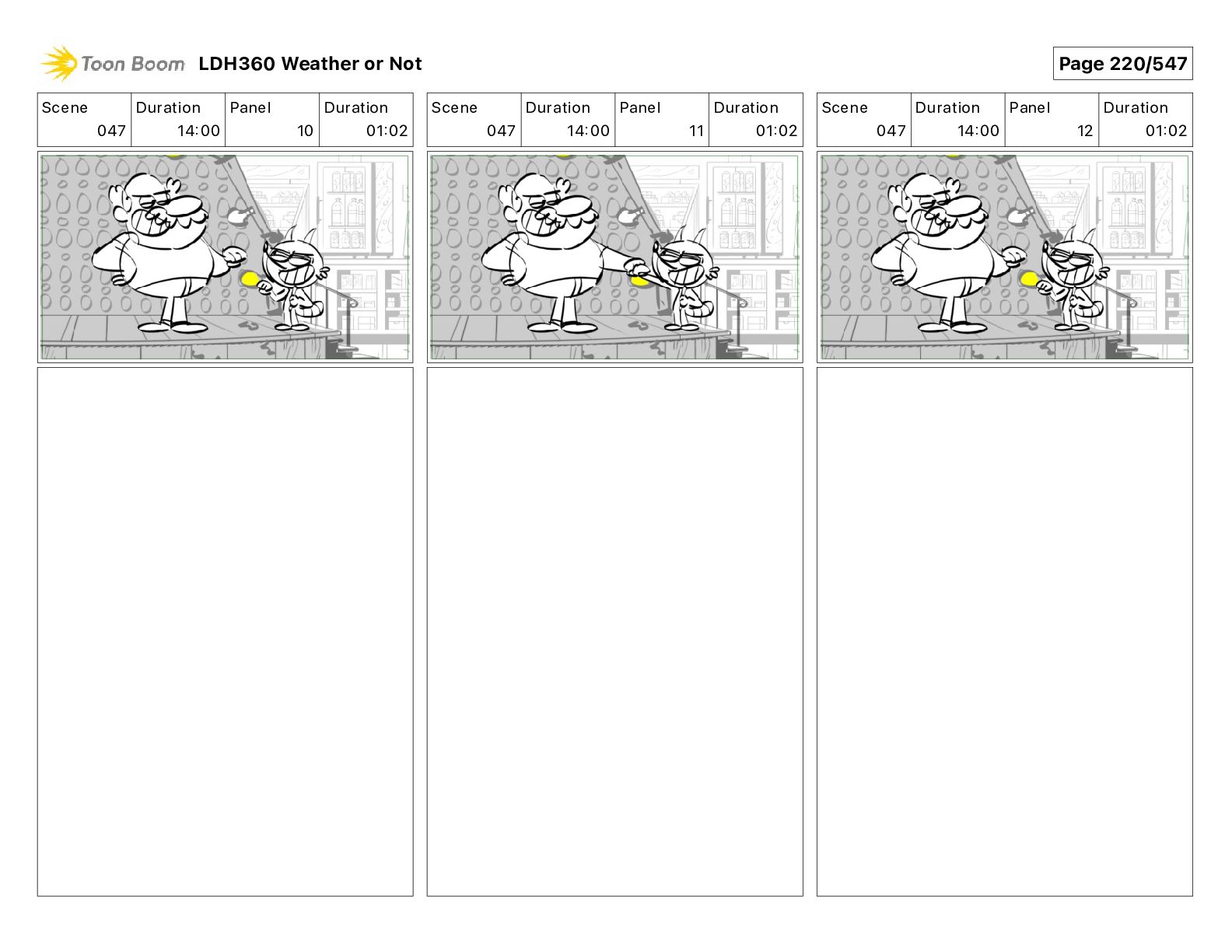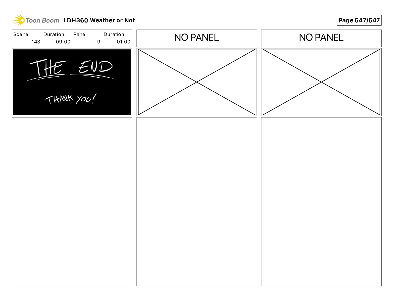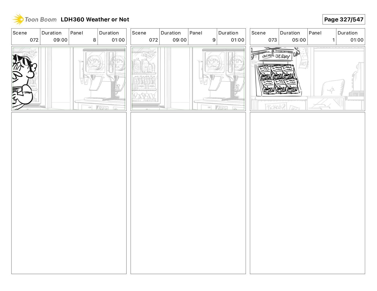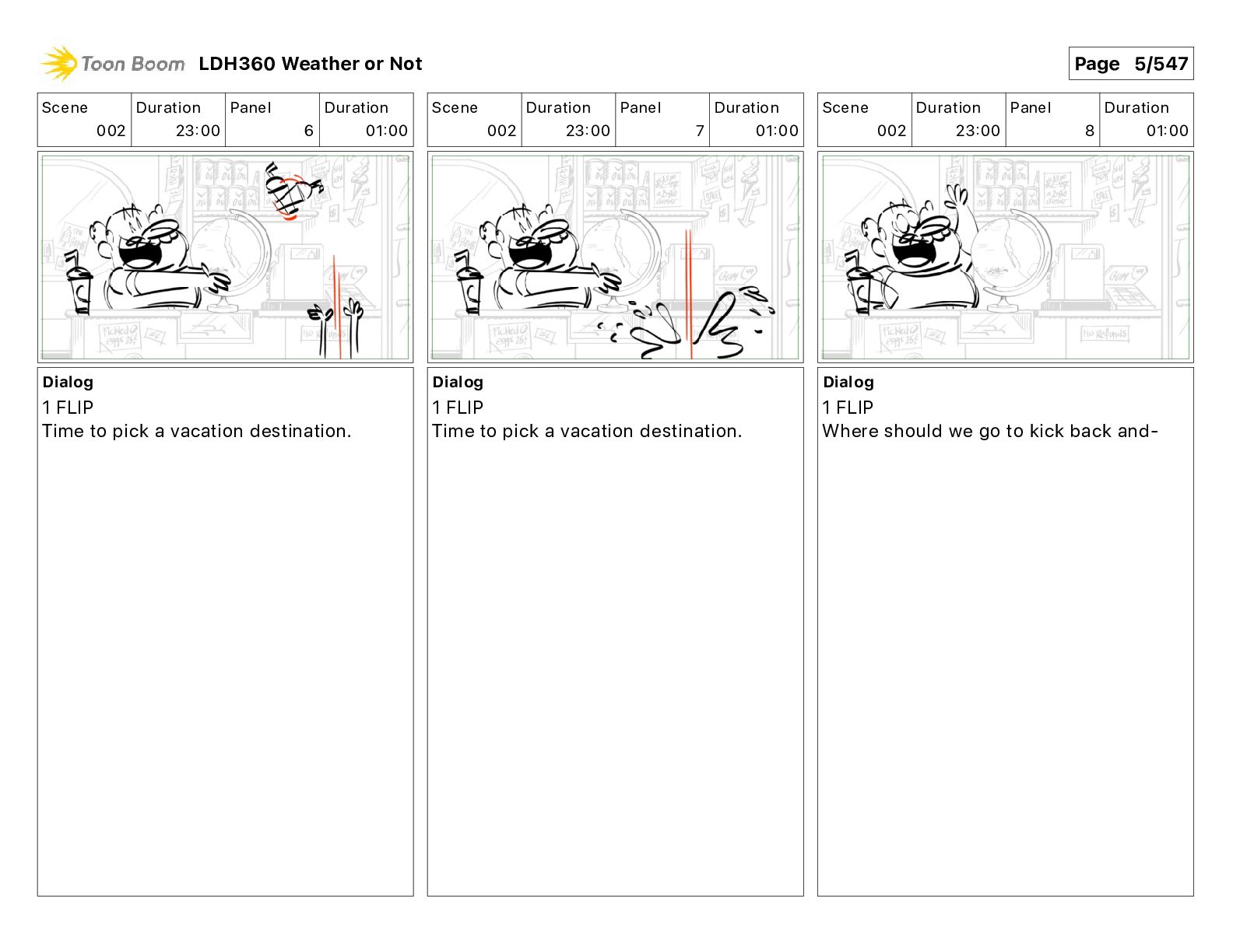 Dialog 1 FLIP Time to pick a vacation destination. Scene 002 Duration 23 00 Panel 7 Duration 01 00 Dialog 1 FLIP Time to pick a vacation destination. Scene 002 Duration 23 00 Panel 8 Duration 01 00 Dialog 1 FLIP Where should we go to kick back and- LDH360 Weather or Not Page 5/547