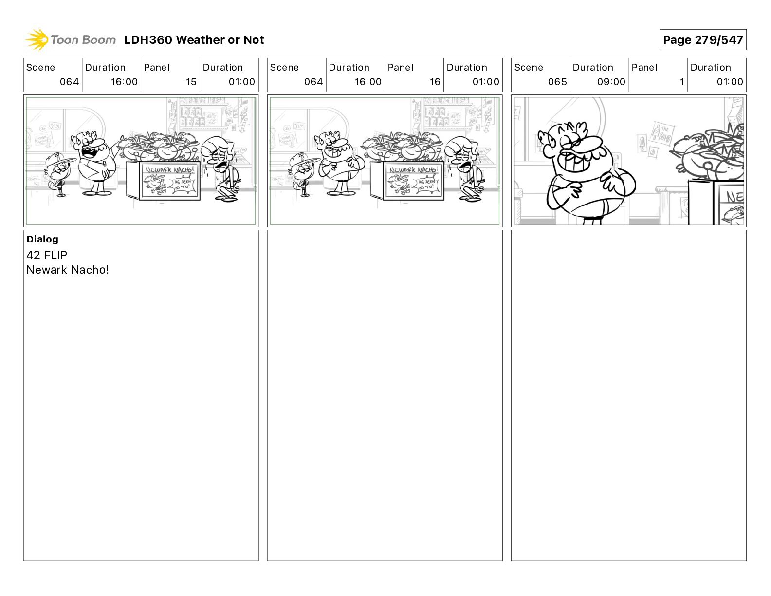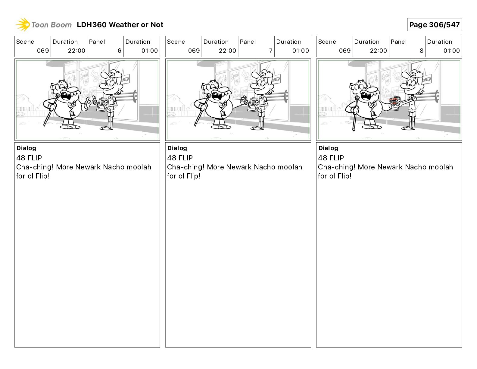 Dialog 48 FLIP Cha-ching! More Newark Nacho moolah for ol Flip! Scene 069 Duration 22 00 Panel 7 Duration 01 00 Dialog 48 FLIP Cha-ching! More Newark Nacho moolah for ol Flip! Scene 069 Duration 22 00 Panel 8 Duration 01 00 Dialog 48 FLIP Cha-ching! More Newark Nacho moolah for ol Flip! LDH360 Weather or Not Page 306/547