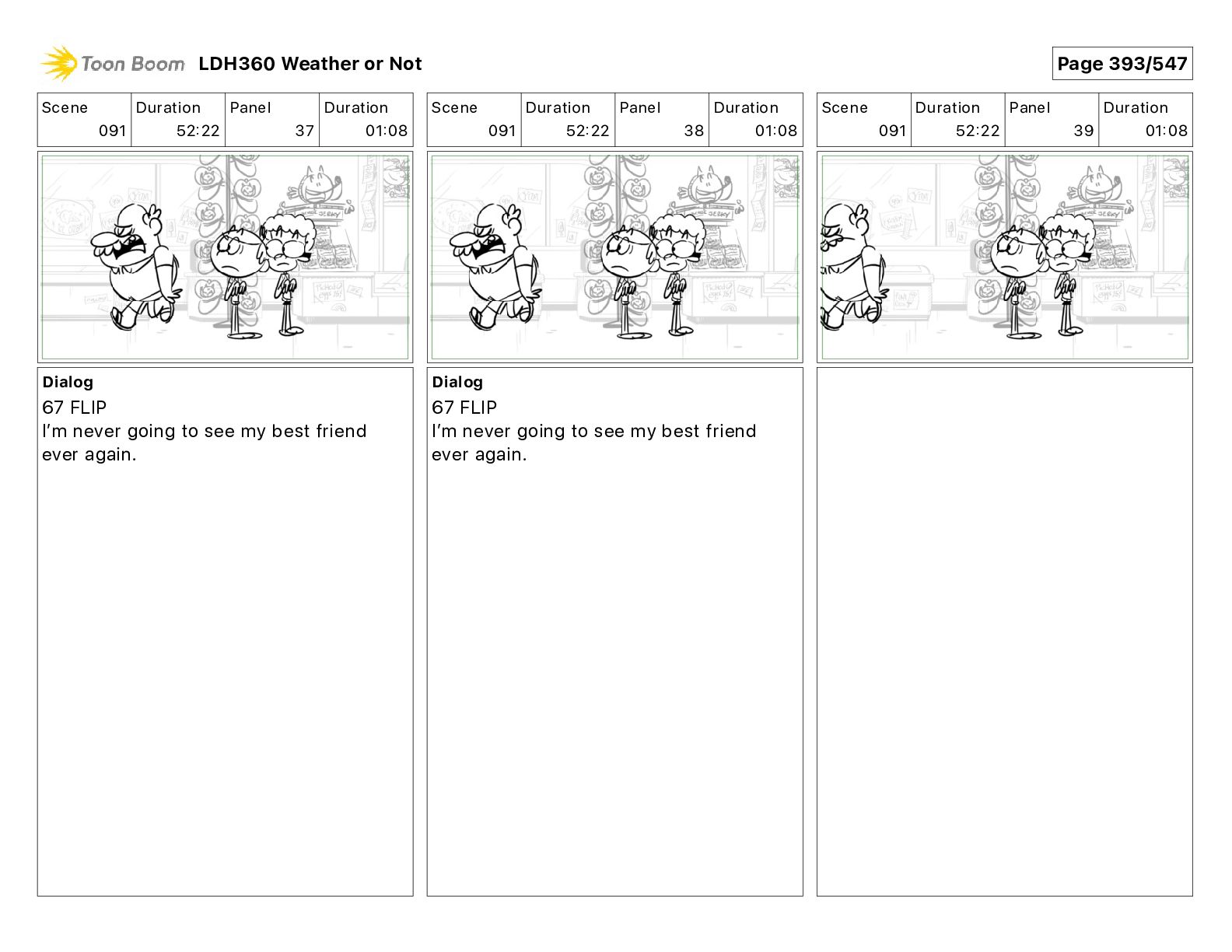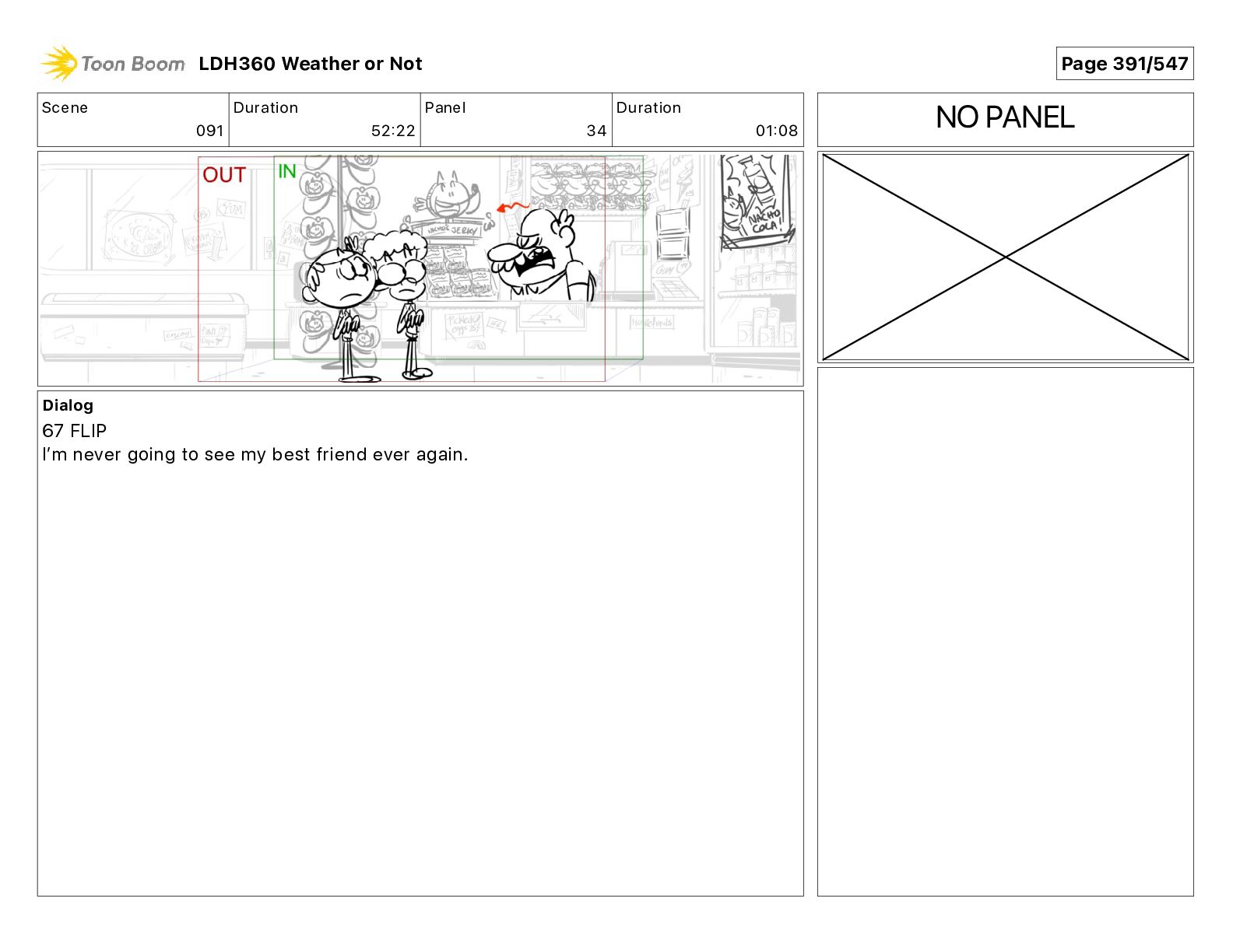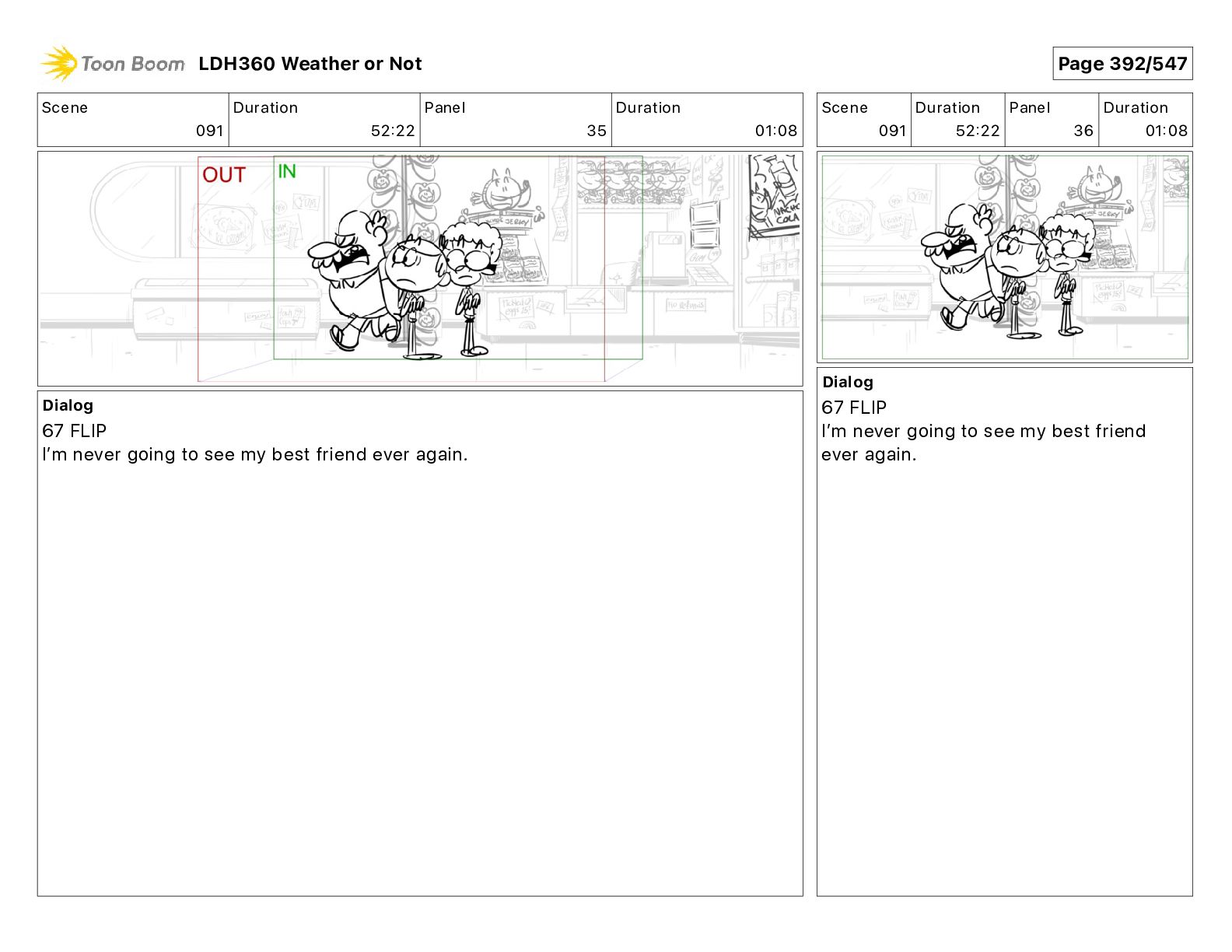 Dialog 67 FLIP Iʼm never going to see my best friend ever again. Scene 091 Duration 52 22 Panel 38 Duration 01 08 Dialog 67 FLIP Iʼm never going to see my best friend ever again. Scene 091 Duration 52 22 Panel 39 Duration 01 08 LDH360 Weather or Not Page 393/547