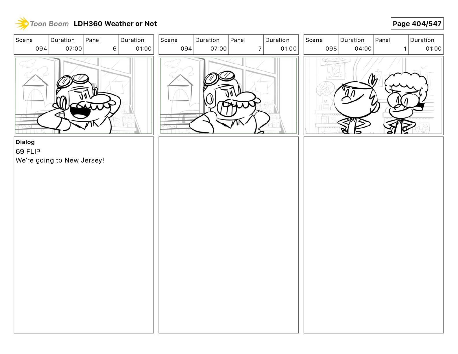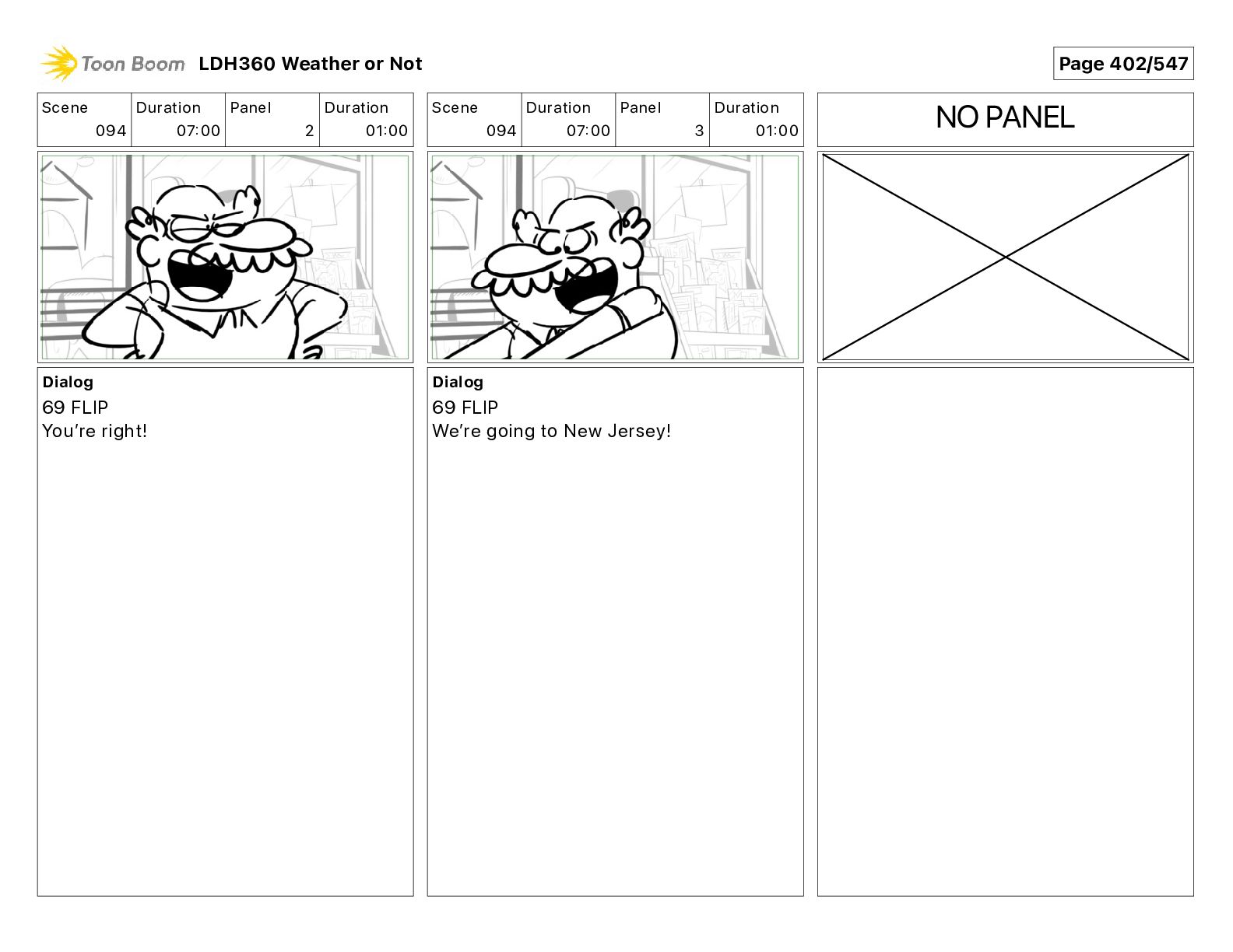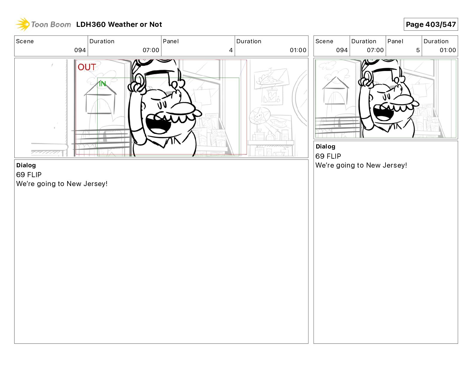 Dialog 69 FLIP Weʼre going to New Jersey! Scene 094 Duration 07 00 Panel 5 Duration 01 00 Dialog 69 FLIP Weʼre going to New Jersey! LDH360 Weather or Not Page 403/547