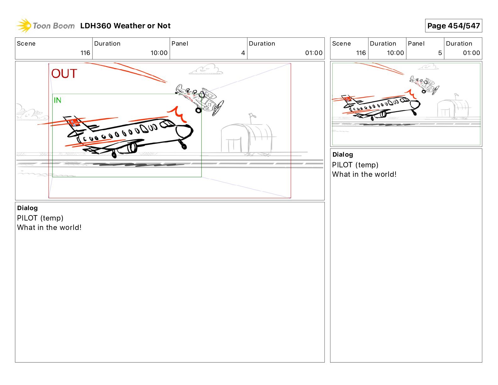 Dialog PILOT (temp) What in the world! Scene 116 Duration 10 00 Panel 5 Duration 01 00 Dialog PILOT (temp) What in the world! LDH360 Weather or Not Page 454/547