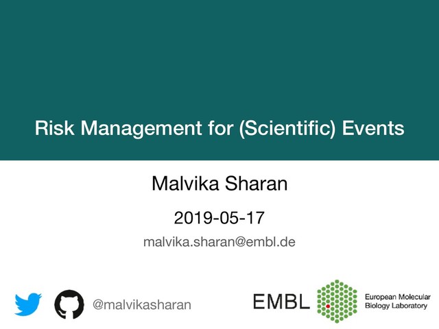 As a community manager, I have organized a number of events ranging from formal conferences, to semi-formal training events, to informal social meetings, both locally and internationally. In the last three years, I have become very comfortable with the kind of work that goes into organizing such events. I have also become quite aware of the fact that my events will face unexpected threats even though I have planned everything well. In this process, I have identified the important aspects of planning a scientific event. Furthermore, I have also created comprehensive lists of responsibilities that appear in the different stages of event organization, risk assessment, task prioritization, and risk mitigation.