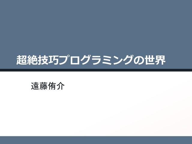 1例) 11 eval(_=%[b='DEILMQTVY';eval((%[a=(-1)EE0.5;f=->EfVf.each_slice(2)Y;c=->wVz=->dVd.mapVd=d.rotate(1)YY ;Q=->k,l,mV((m-k)E(l-k).conT).arQ<0Y;y=[];x=0.99;o,T=w.partitionV|n|d=0;z[n].mapV|k,l|y<<f[k,x,k,1,l ,1,l,x];d+=k.conTElY;d.arQ<0Y;f[o,T,[[0,d=2IEa,d+15,15]],o.map(Dd=:reverse),T.map(Dd),[]].mapV|o,T|T .mapV|h|z[h].max_byV|u,|u.realY;Y.sort_byV|i,|-i.realY.mapV|h|i,=h;v=0;o.mapV|n|z[n].mapV|x|m,l,E,k= x;e=(i-m).arQEE2;v<eDD(d=Q[k,m,l])^(Q[k,m,i]^d|(Q[m,l,i]^d))DDo.allMV|n|z[n].allMV|k,l|[i,m,k,l].uni q.size<4||Q[i,k,l]==Q[m,k,l]||Q[i,m,k]==Q[i,m,l]YYDD(v=e;w=n;T=Ex,m,Eh,i)YY;w[0..-1]=TY;o.mapV|v|t,= s=z[v];n=->rVk,m,l=r;k=k[2],l,m[2];r[I]=Q[Ek]DDv.allMV|q|z[k].anyMV|k,l|q==k||Q[k,q,l]YYY;z[s].mapV| k,l,m|l[0,2]=k,m;n[l]Y;(s[I..-1].mapVt=t[1]until(t[I]);k,m=l=t;m[0],k[1]=t;n[m];n[t=k];lY<<t).mapV|k ,m,l|y<<f[k[2],x,l,x,m[2],x]YY;x=1Y;yY;e=0;%[`^Tx52t<^cd,7/w(kabvbEz5arIwIa17.=c'slxr=-'4|e)EwkMI,_^ pvMVhsnME.rLw_k)^tp>+TIEduE45u>mv%^Y=Vny-`zce)k`heIt%`Vzf;c2nk4d|Vp^D_,,|kDDL2r_sDy%%fiMV6cYE)5`,m/k YQ/;IEezMVv,QchILY|p%%i<vstDt)=M7vLcT>=4Q2(vwael61//<ck>-l67uQ;2Tq,c_'qEIcm1cL;i++2-tYdbenq%pxr;2'Vn (uDa)n)zf4w)%5vh;ssV5kI;)z;2=+Toe<VL_D0`VLu;ook_y+eT`>IeT9-(i<MiVdd)ib_y+x`s^_u>M1s/mYQvEY`vMxu%Y0u5 7Qaoh2<Mkd'vtkp^zTc`E->Ep+icop_u0%=-zv,omq`Qz/41DV'`f9L5`M'bVxx%/;qLtq12%q:V'9,fD,ovu%qr|+e+rudI`Ir0 5chVd+Q5`II76rY0laT%b(I>Y%EQ1xf^|r,1)%4--zQa'<qxL-7Y0+|'vvbIxso0usv;%.I:pLQbe5a),Vu|91(0EIv^T>c5Dmd: 9-I15%Lp/>>z57^,Th2>%la0;5`dE1<xvrd09^9zz<.t,LpofrTTsQi'u5;Lwp7+zmm`'>qy;f6)||Ikw_0wdMM5<hmn64wbQ_rD m'>so7b..4qy`nQrz%Vf7Ii^epY(x=|49Lh(=>sI_sbofb7|qM,unaD%^i:|;_tEEnb-DDt`t%I2h;0x5f^yhs,pbLf+m^e>yqzQ '%::|^=,5-b=^_1x1se`kp,%wq4T%;'E.:Dsp_V-0||,)=;.a|<%0QY:;t:fEmk:4|_%o-.:aooq/6mThdvz4`uQqY1r'em.5'z1 2p7e%%pp6ebMM,m`5QpYx'd`,`6a4T)6Q.k.E.YsdiE^ox9pyrsr%|(kfn=y9q`6;=V<z%9(0cf^yp=:Irw-c/y>%iie%)y-1i(y 'V-n^uTva%l0Q>,yz;E0:LbV'eTb6MIb``Da.__ihbacxY|fc6>pTtl;ivVt,q>/%w,=hnI+i90>10u59te,Ildw4p94x`iwvs`f +^)w1M>%wf^].bytesV|i|e=eE59+(i-5)%L9Y;Q=->iVk=e%i;e/=i;kY;d=VI2=>c[[]]Y;54.upto(1I0)V|h|d[h%L9+I7]= c[(0..Q[5]).mapVl=o=T=[];n=0;(-2..Q[17]).mapV[l=Q[2],o=Q[1I]+Q[21]Ea+1+a]Y.flat_mapV|m,n|E,(h,)=[[o, l],[(o+o=n)/2,0]][0..lDl=m]Y.mapV|o,l|n=l<1M((n==0ML:1).upto(L)V|k|T<<h+kE(n-h)/4+kEkE(o-2En+h)/64Y; h=o;0):oY;TY]Y;n=[];m=0;v=aEE0.04;z=15/v.arQ;w=-0.2I;h='eval(_=%['+_+'])';h.tr(b,']+b+%[').bytesV|o| q=-w+s=wEm+=1;r=vEp=vEEmEz;d[o].mapV|v|n<<v.mapV|v,l|T,k=v.rect;[(p+(r-p)ET/=15)El,q+wET-k]YY;m<101D Dn+=[f[p,q,r,s,E[r,0]E(m/100),r,2,p,2],f[p,2,r,2,k=rET=0.976,2,TE=p,2],f[T,2,k,2,k,x=-715,T,x],f[T,x ,k,x,r,x,p,x],f[p,x,r,x,r,s-l=690,p,q-l,E[p,x+2]E(1/m)]];Y;T=VY;k=VY;l=''<<I2;m=n.mapV|i|(p,q),(r,s) ,(t,u)=Ei;p-=r;r-=t;Mf+l+i.mapV|m|[[T,:v,Em],[k,:vn,(rE(q-s)-pE(s-u))Ea,(p.conTEr).imaQ]].mapV|T,o,p ,w|T[[o,E(p.rect<<w).mapV|p|(pE500).round/z/10Y]El]||=T.size+1YE'//'YElY;o=''<<I5;puts(%(Q%squine')% l,o+%V'+(eval(%[Y+h+%V]);exit);'Y,T.keys,k.keys,m,o+M');]).tr(b,'%)27>fiz|'.tr('x%-|','%-'<<125)));' [[[ Monumental Quine (c) 2015 Yusuke Endoh -- tested with ruby 2.2.1 -- built on 2015/04/01 ]]]']) TrueTypeフォントデータの テキスト圧縮表現+レンダリング 穴ありポリゴンの凸多角形分割 3Dプリント可能なモデルデータ生成 コードを短くする (世俗的)インセンティブ 3Dプリンタ代:1行あたり約$15! 複雑な字形を使わない “3”, “8”, “g” などを一切不使用