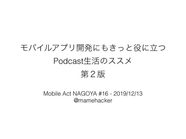 ϞόΠϧΞϓϦ։ൃʹ͖ͬͱʹཱͭ Podcastੜ׆ͷεεϝ ୈ̎൛ Mobile Act NAGOYA #16 - 2019/12/13 @mamehacker