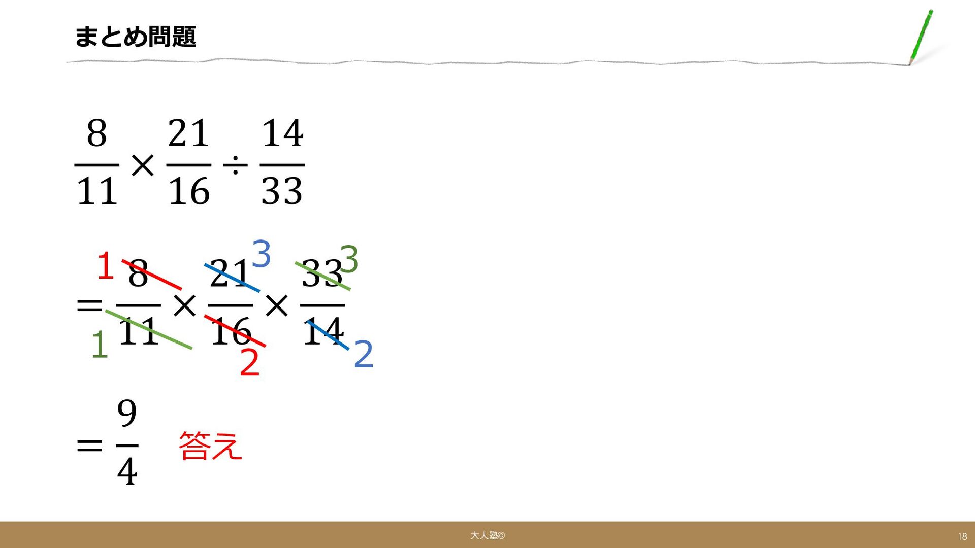 11 × 21 16 × 33 14 = 9 4 まとめ問題 大人塾© 18 答え 2 1 3 1 2 3