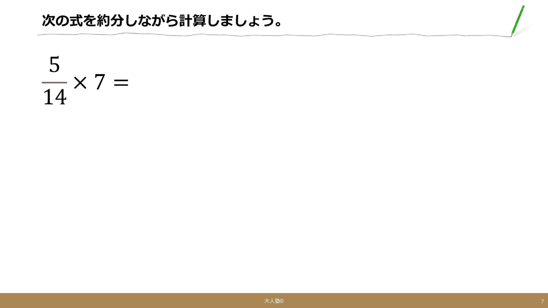 次の式を約分しながら計算しましょう。 大人塾© 7 5 14 × 7 =