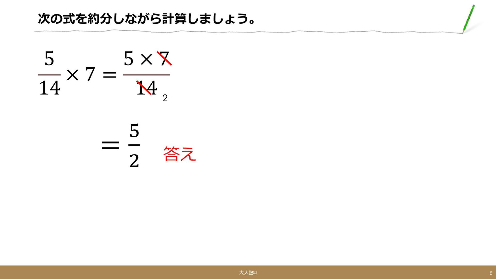 次の式を約分しながら計算しましょう。 大人塾© 8 5 14 × 7 = 5 ×