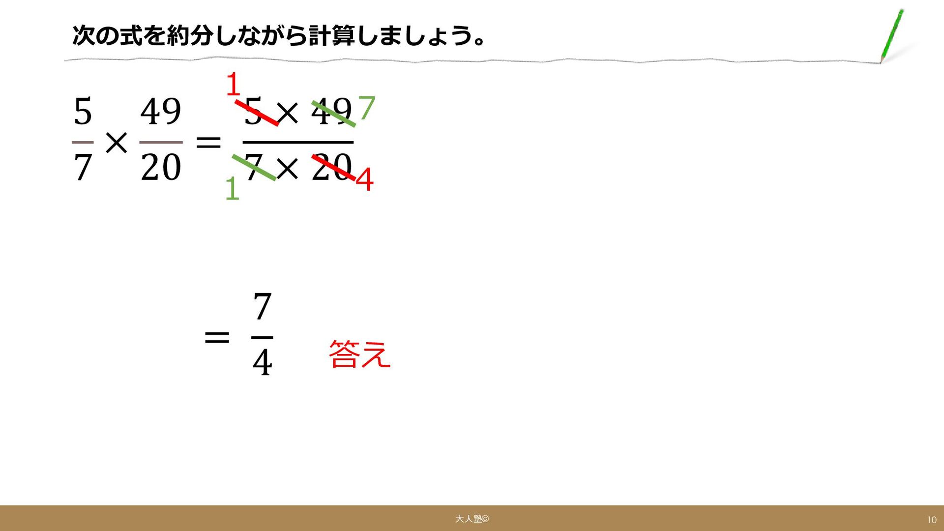 × 20 次の式を約分しながら計算しましょう。 大人塾© 10 1 4 7 1 = 7 4 答え