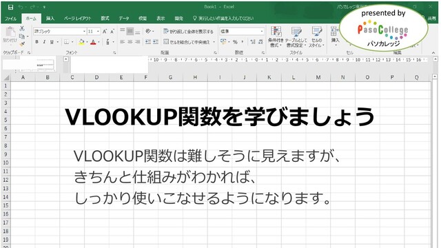 VLOOKUP関数を学びましょう VLOOKUP関数は難しそうに見えますが、 きちんと仕組みがわかれば、 しっかり使いこなせるようになります。 パソカレッジ presented by