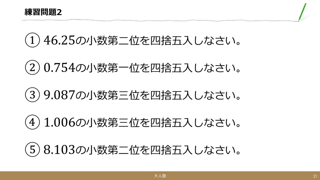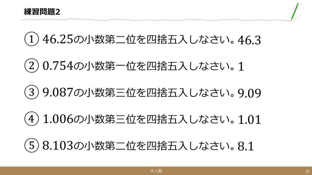 8.103の小数第二位を四捨五入しなさい。 大人塾 21