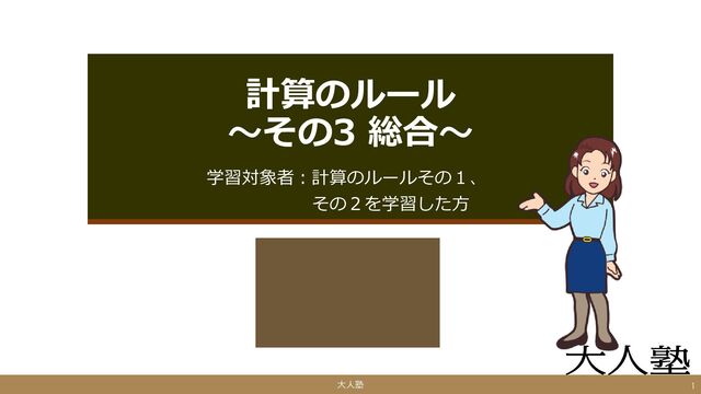 計算のルール ~その3 総合~ 学習対象者:計算のルールその1、 その2を学習した方 大人塾 1