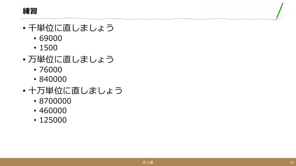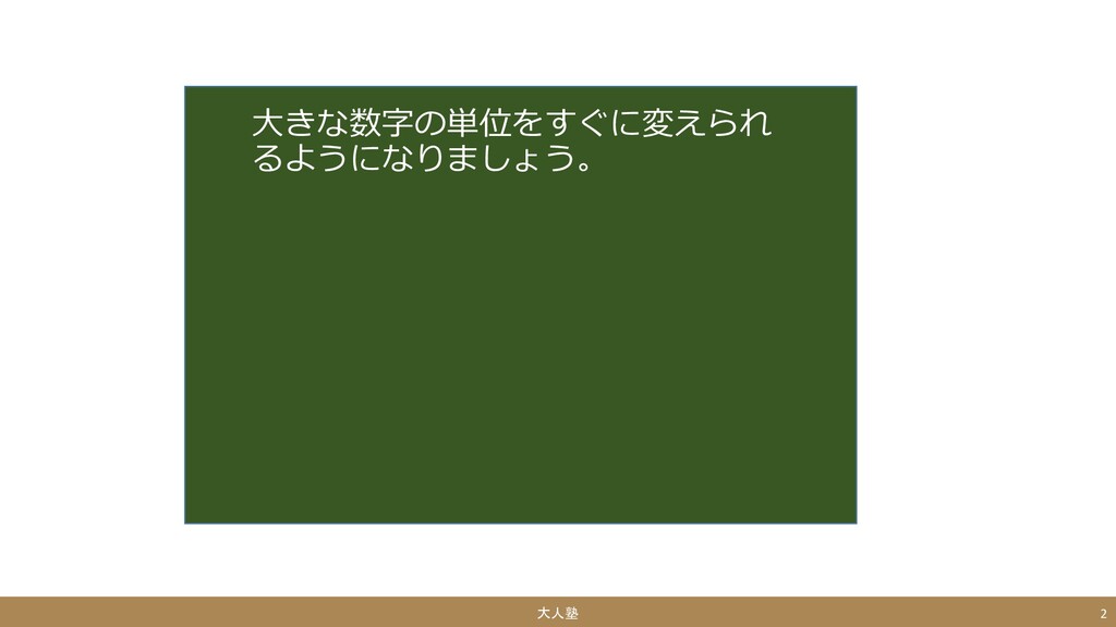 大きな数字の単位をすぐに変えられ るようになりましょう。 大人塾 2