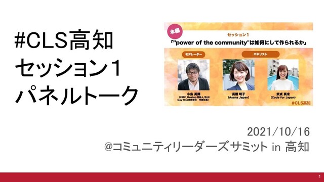 #CLS高知 セッション1 パネルトーク 2021/10/16 @コミュニティリーダーズサミット in 高知 1