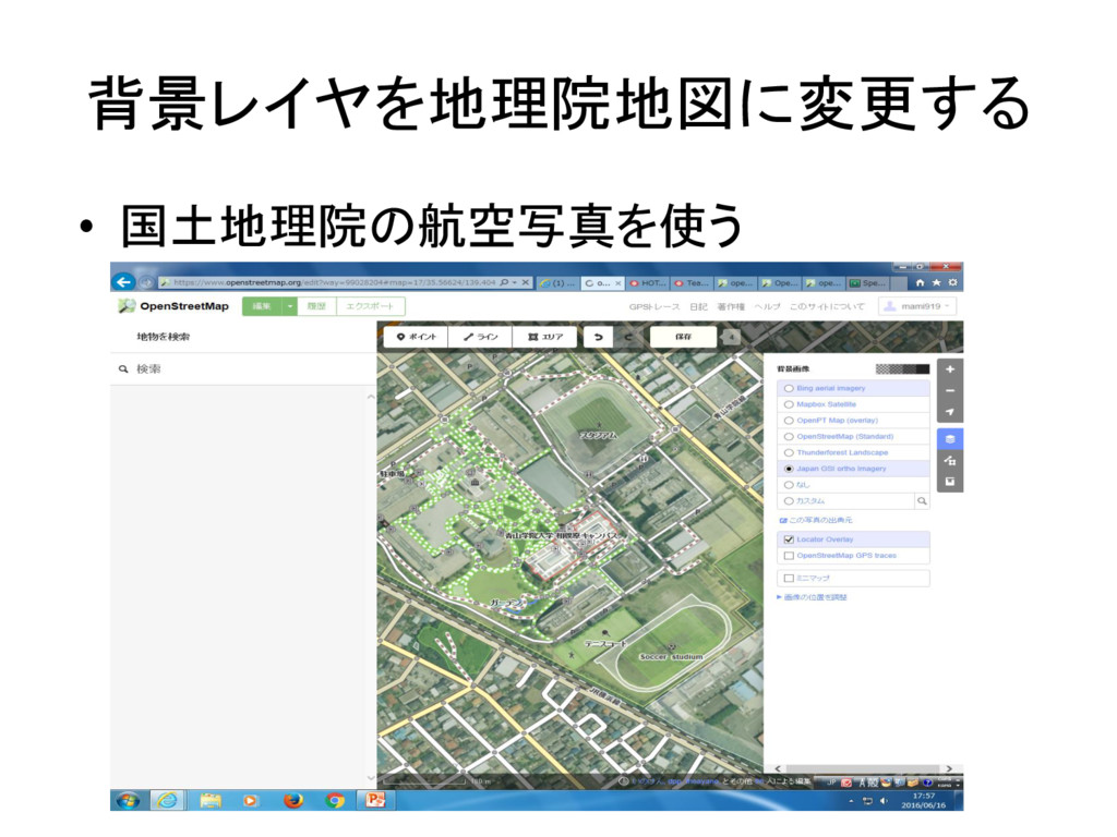 背景レイヤを地理院地図に変更する • 国土地理院の航空写真を使う