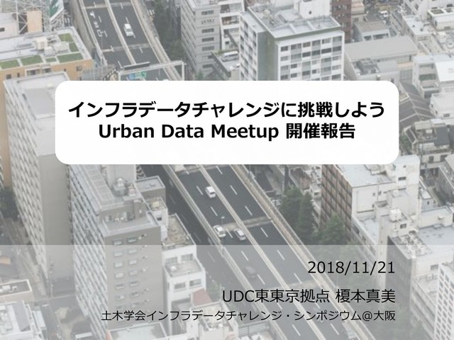 2018年11月21日開催、土木学会インフラデータチャレンジ・シンポジウム@大阪の発表資料。アーバンデータチャレンジ東東京拠点としての活動報告。