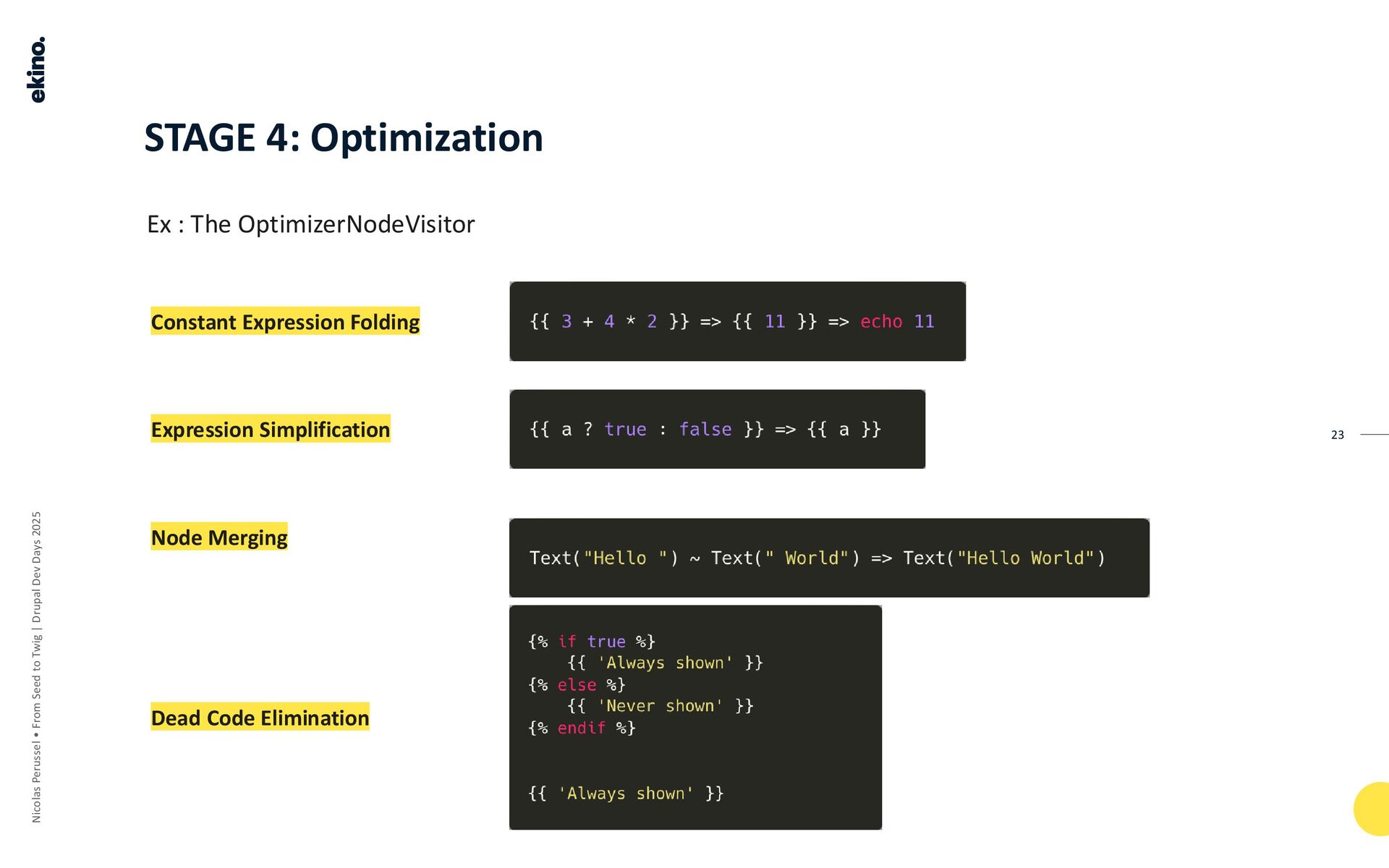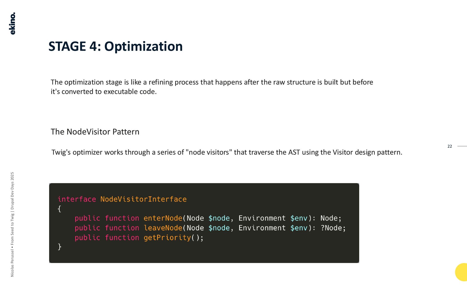 • Mechanism: Twig's optimizer works through a series of "node visitors" that traverse the AST using the Visitor design pattern.