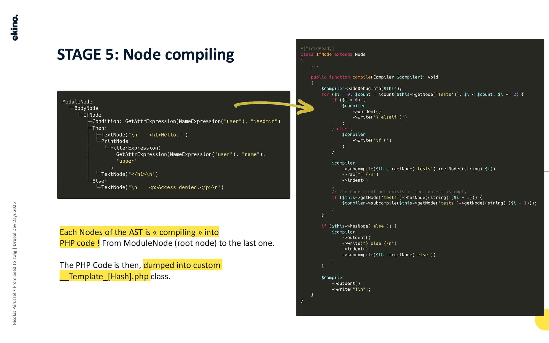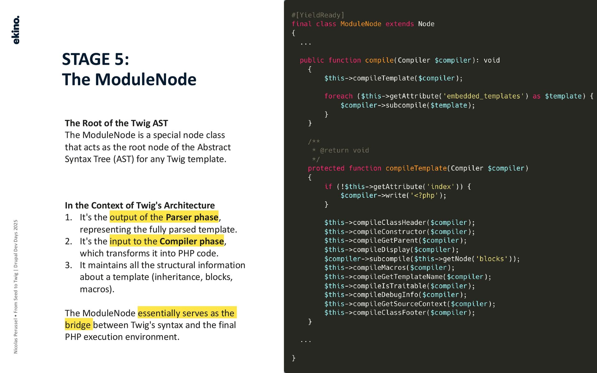 • Mechanism: Every Node of the AST is "compiling" into PHP code, starting from the ModuleNode.