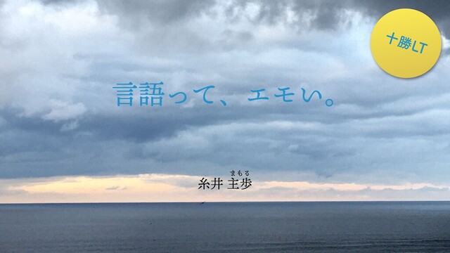 とあるアンケートによれば、中学生が好きな教科ランキングにおいて外国語は7位、国語は9位らしい。つまり学生は一般的に言語というものをあまり好んでいない。だが、言語は「エモい」のだ。JKがタロイモのデンプンにエモさを見出すのなら、俺は言語にそれを見出そう。それを一方的に語るスライド。