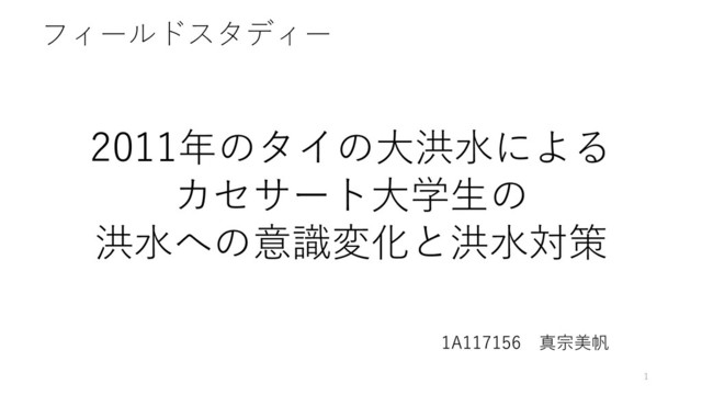 フィールドスタディー 1A117156 真宗美帆 2011年のタイの大洪水による カセサート大学生の 洪水への意識変化と洪水対策 1