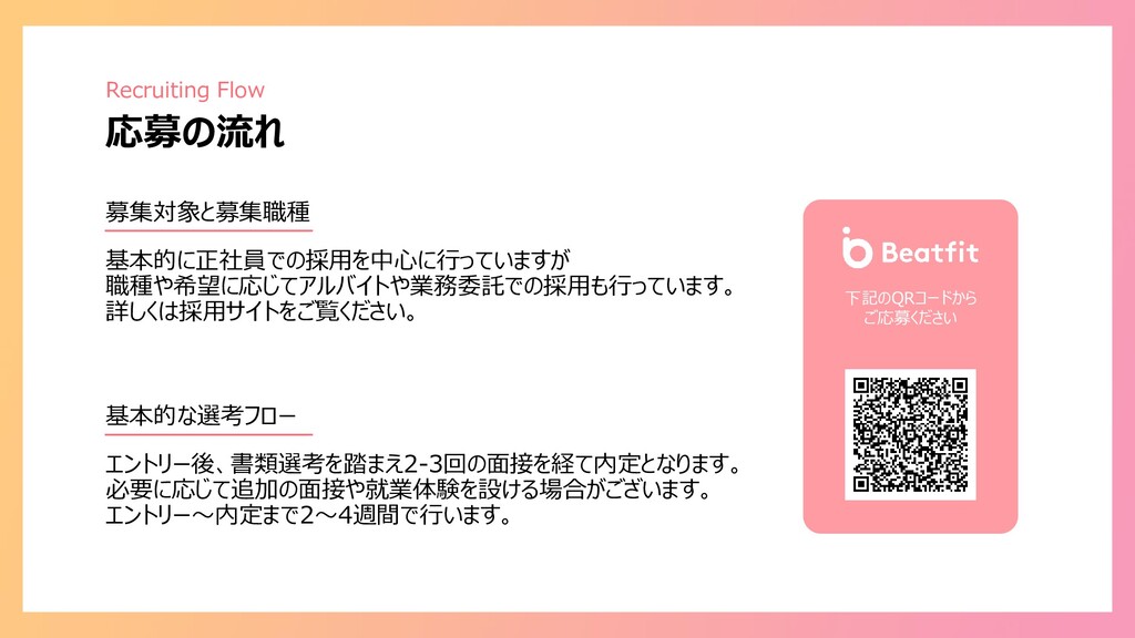 株式会社BeatFitの会社説明、採用資料です。